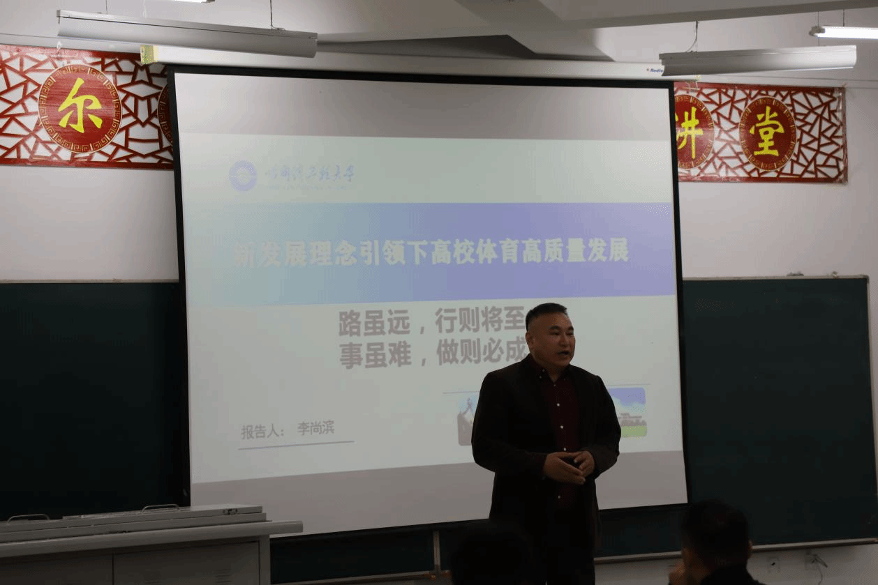 (文/张磊)为进一步提升体育学院专业建设水平和教学模式改革,促进我院体育工作高质量发展。4月24日下午,哈尔滨工程大学李尚滨教授莅临我院,带来了一场主题为《新发展理念下引领高校体育高质量发展》的专题讲座,会议由体育学院院长戴显岩主持,黑龙江工程学院藏荣海教授、哈尔滨理工大学体育部杨喜君副主任,及体育学院部分师生聆听讲座。
