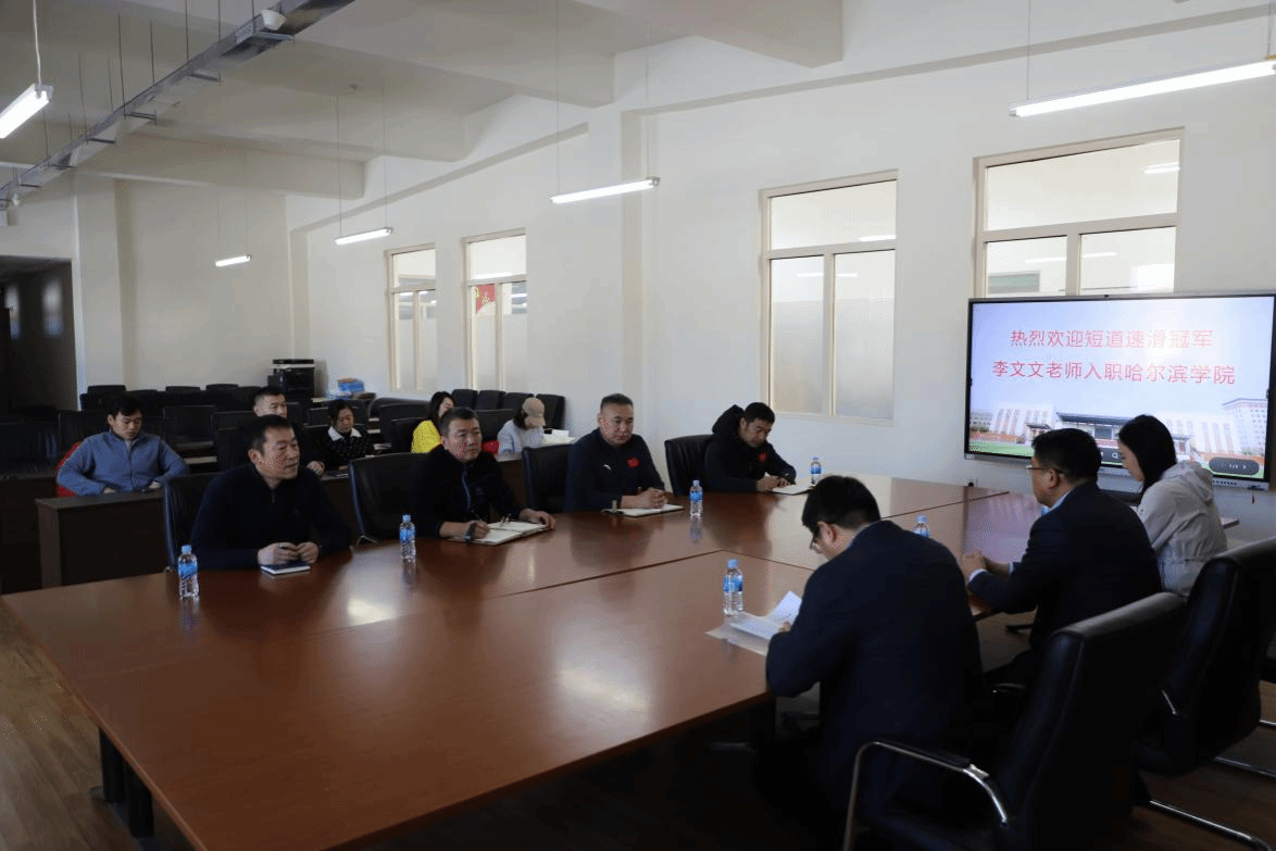 在随后的发言中,李文文老师表达了自己加入体育学院的激动与荣幸之情。她表示,能够成为这个充满活力而又温馨的学院一员,感到无比自豪。李文文老师还向各位教师详细介绍了自己的成长经历,以及在短道速滑领域的辉煌成就和执教经验(冬奥冠军任子威的教练)。她认为现如今执教学生与过去的专业运动员完全不同,她将运用自己过硬的素质与本领快速的挖掘适合高校学生的教学方法,将专业经验与体育教育快速结合,全力以赴为体育学院的发展贡献自己的力量,为培养更多优秀的冰雪运动人才而不懈努力。会议最后,参会相关教师进行了沟通与交流,会议在一片欢乐的氛围中结束。