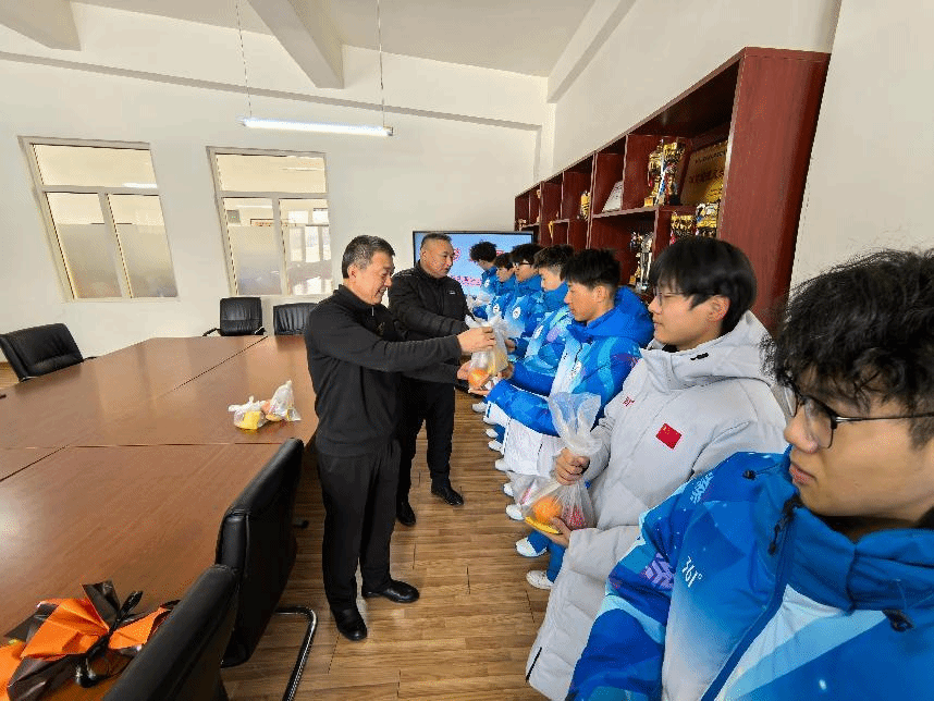1月27日,王大为书记和戴显岩院长将亚冬会相关服务人员召集在会议室,为他们送上了新春的祝福和节日的礼物。慰问中,王大为书记高度赞扬了志愿者们无私奉献的精神和裁判员教师们严谨专业的态度。他表示,志愿者们和裁判员教师们是学院的骄傲,他们的辛勤付出不仅为亚冬会的成功举办贡献了力量,也展示了体育学院师生的良好风貌。