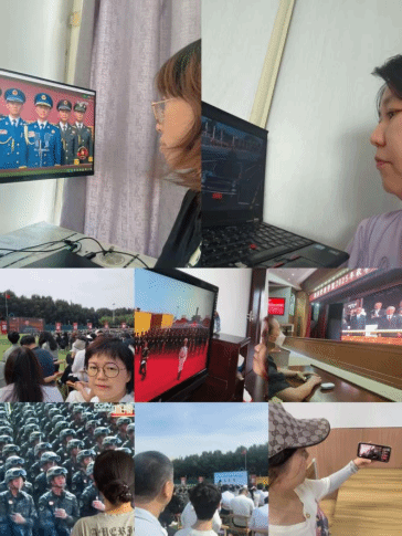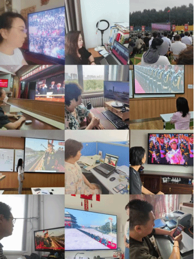 9月3日上午9时,九三学社哈尔滨学院支社社员们准时集合,通过央视直播全程观看天安门广场纪念大会与阅兵式。大会由习近平总书记发表重要讲话并检阅部队,阅兵按阅兵式、分列式进行,时长约70分钟 。