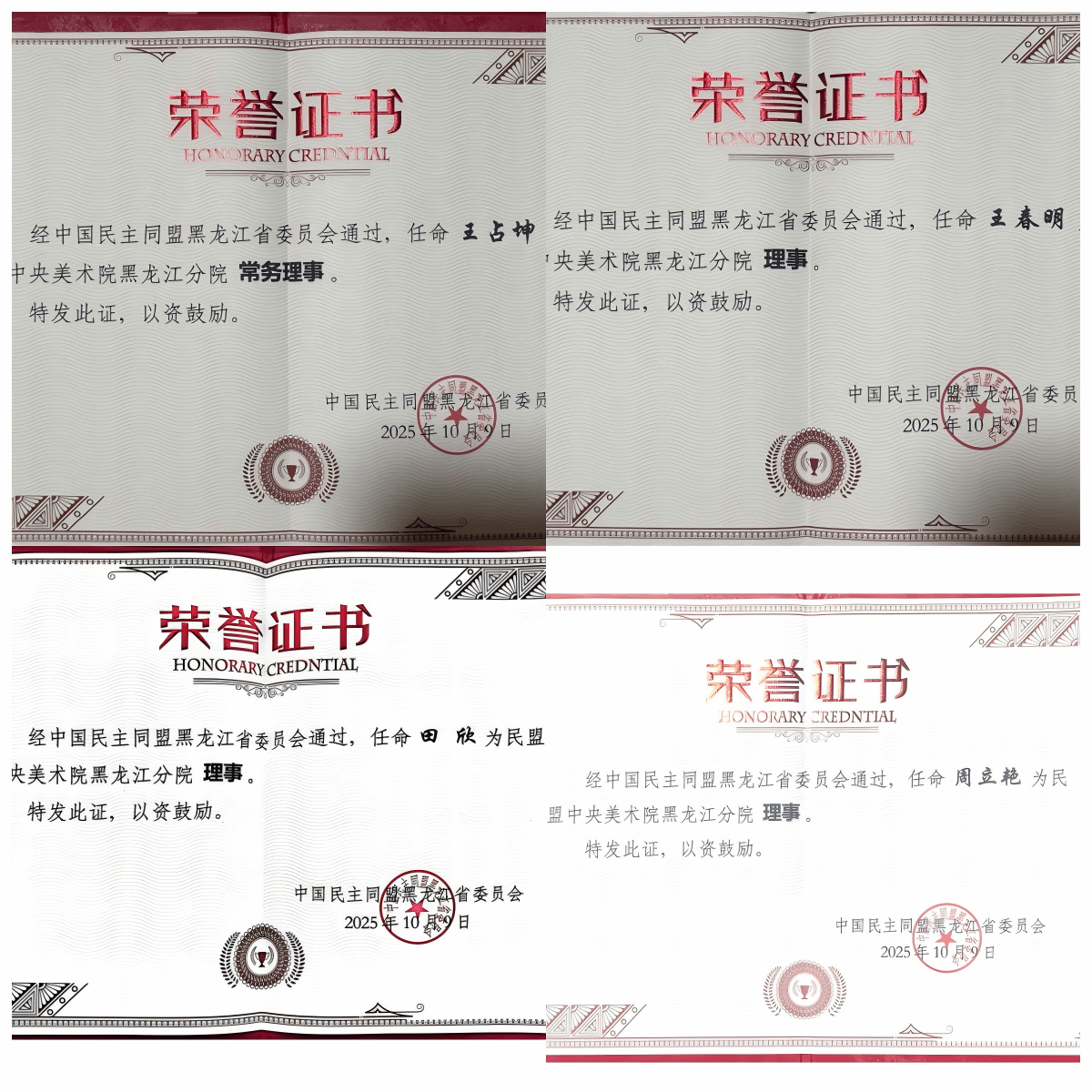 我校艺术与设计学院多位教师深度参与民盟中央美术院黑龙江分院建设,既是学院服务地方文化事业、助力“文化强省”建设的重要举措,也是学院“以实践促教学、以服务强学科”办学理念的生动体现。未来,艺术与设计学院将继续鼓励教师积极投身社会服务与实践创新,在培养高素质艺术人才、推动区域文化创新、服务地方经济社会发展等方面持续发力,贡献更多的智力支撑。