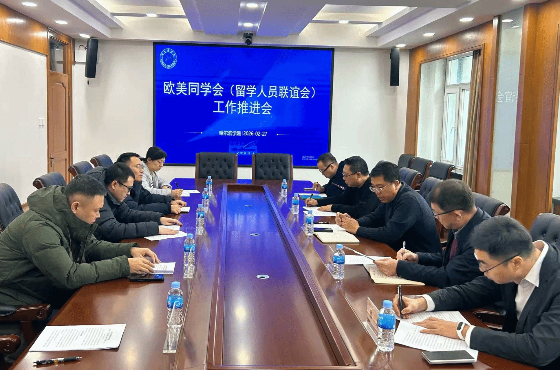 会议审阅了校欧美同学会《2025年工作总结及2026年工作计划》。与会成员围绕国际交流、组织建设、教学科研、社会服务等年度重点任务进行讨论。