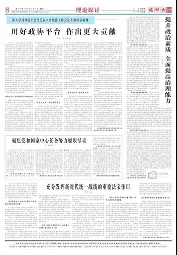 12月31日,《团结报》“理论探讨”专版刊发校长胡宝忠同志理论文章《提升政治素质 全面提高治理能力》。