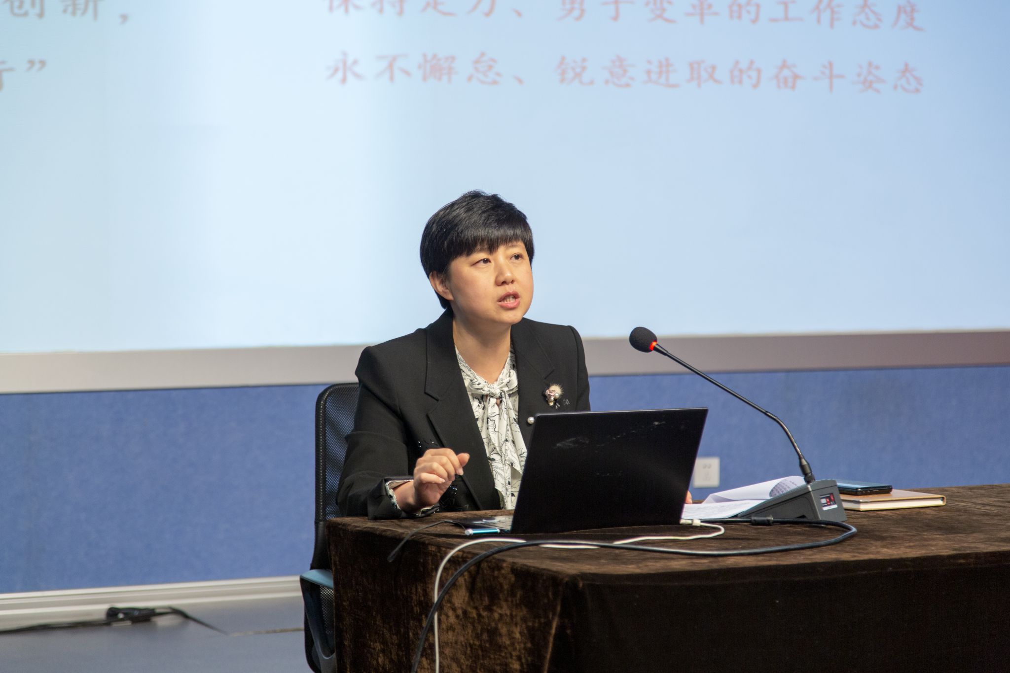 讲座上,宋老师从党的二十大报告的整体概况中对如何理解党的二十大主题进行了逐句分析,从党的二十大召开的重大意义中以历史维度、时代维度和人类文明维度三个方面进行了详细讲解,并深刻阐释了习近平新时代中国特色社会主义思想的核心内容和重大意义。