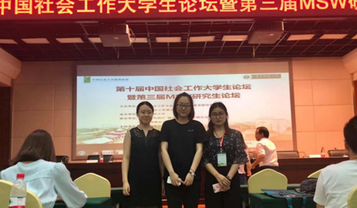 8月20日,第十届中国社会工作大学生论坛暨第三届MSW研究生论坛在华中师范大学举行,我校文法学院社会工作专业2015级学生石芳兵、杜依倩,2016级学生邵晓曼应邀参会。最终,经过专家评审,石芳兵撰写论文《外来务工人员子女抗逆力提升实践研究——以哈尔滨市XF小学校为例》被评为本科生论坛三等奖,黄莹老师被评为全国优秀指导教师。