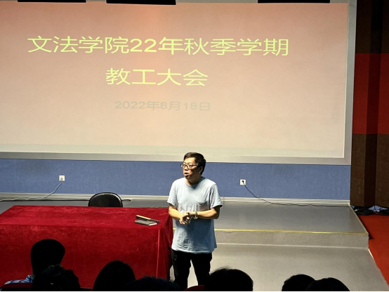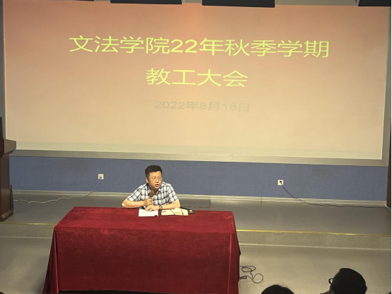 8月18日,文法学院召开2022年秋季学期教职工大会。会议就2022年春季学期工作进行了全面复盘总结,对秋季学期各项工作进行部署安排。会议由文法学院院长龚宏主持。