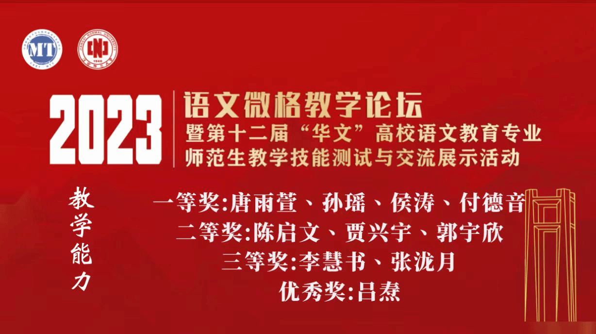 文/吴泓、周凤莉)2023年11月3日-6日,第十二届“华文杯”高校语文师范生教学技能测试与交流展示活动在江西师范大学成功举办。本次比赛由中国教育技术协会微格教学专业委员会主办,是目前国内教育专业规模最大、参与高校最多、影响最广的活动。