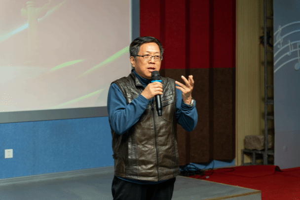 演出结束后,院长龚宏教授作为青葱剧社的创始人上台致辞,他回顾了青葱剧社的发展史,讲述了自己与话剧、与青葱剧社的不解情缘,追忆了亲身排演话剧的“青葱岁月”,鼓励同学们积极参与文学实践,并把在剧社期间所培养的艺术才华和文学修养带到工作中,努力成为国家的栋梁之材。09级社员徐志强上台发表感言,表示很荣幸能够同在校社员共同完成《我们》这部作品,希望剧社越来越好,青葱长青。