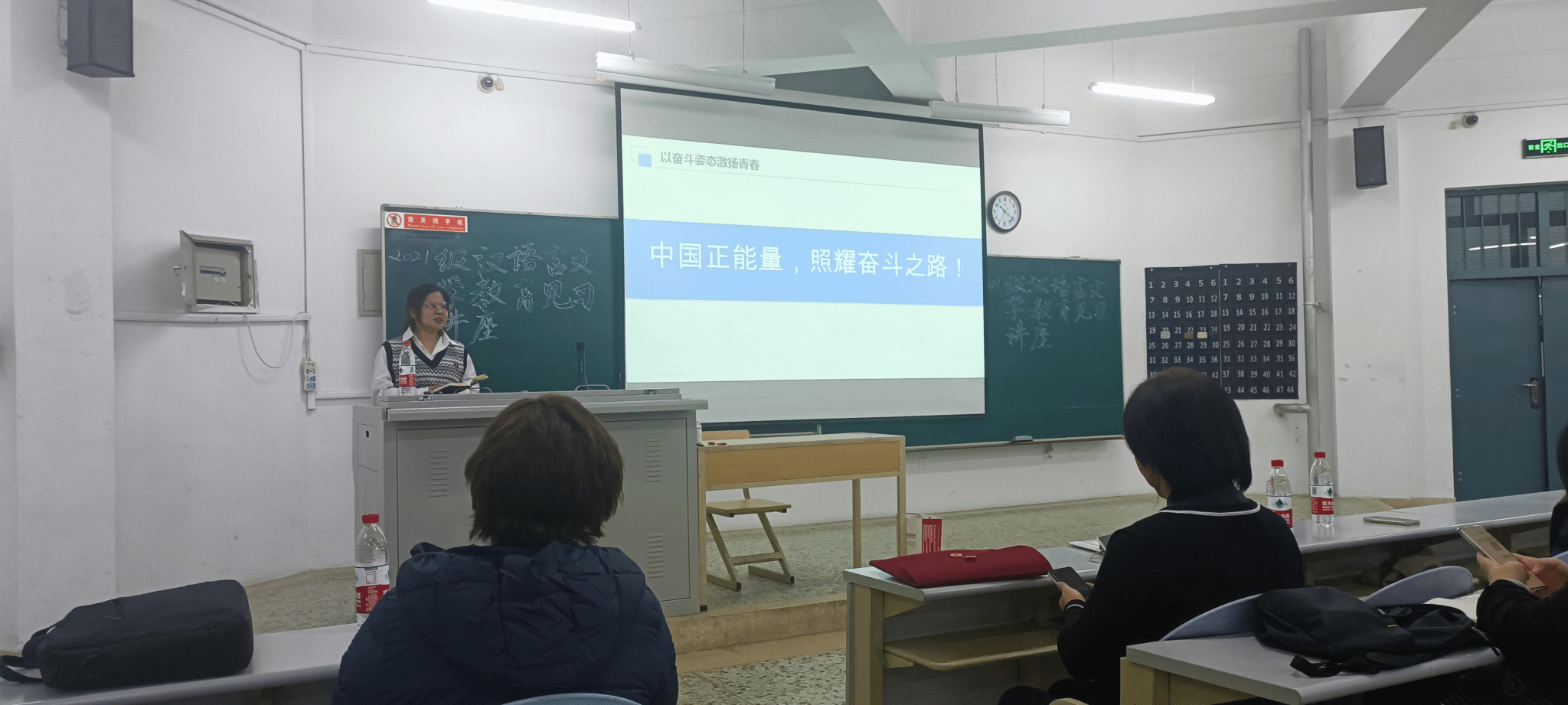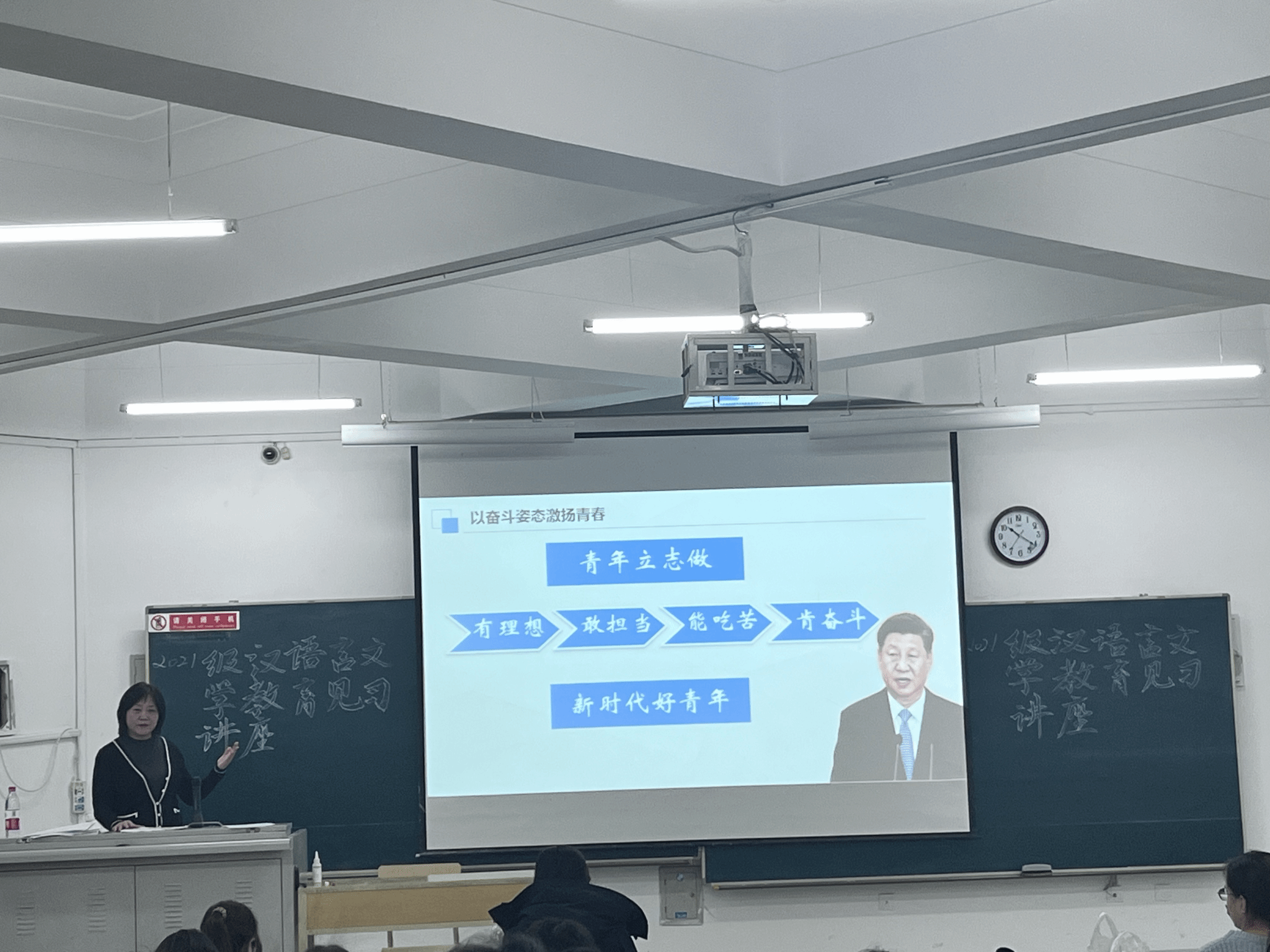 本次讲座的主题为“以奋斗姿态激扬青春”。在讲座中,王兰校长围绕两个主题展开讲解,一个是 “青春心向党,逐梦向未来”,一个是“立鸿鹄志,做奋斗者”。王校长的讲座既高屋建瓴,又活泼生动。结合自身的成长经历,王兰老师勉励在座的同学们要“敢担当,有理想,能吃苦,肯奋斗”,要跟党走,做党的接班人;要牢记习近平总书记所说的“明天的中国,寄希望于青年。青年兴则国家兴,中国发展要靠广大青年挺膺担当”。坚决抵制“佛系”、“躺平”思想。同时,王校长指出,万丈高楼平地起。崇高的理想要靠日常工作中的点点滴滴努力来实现。王兰校长从管理者的角度,提出了对未来语文教师的要求,希望在座的师范生能够多读书,勤练字,磨练自己的师范技能。王校长的讲座深入浅出,获得了在座同学的一致好评。