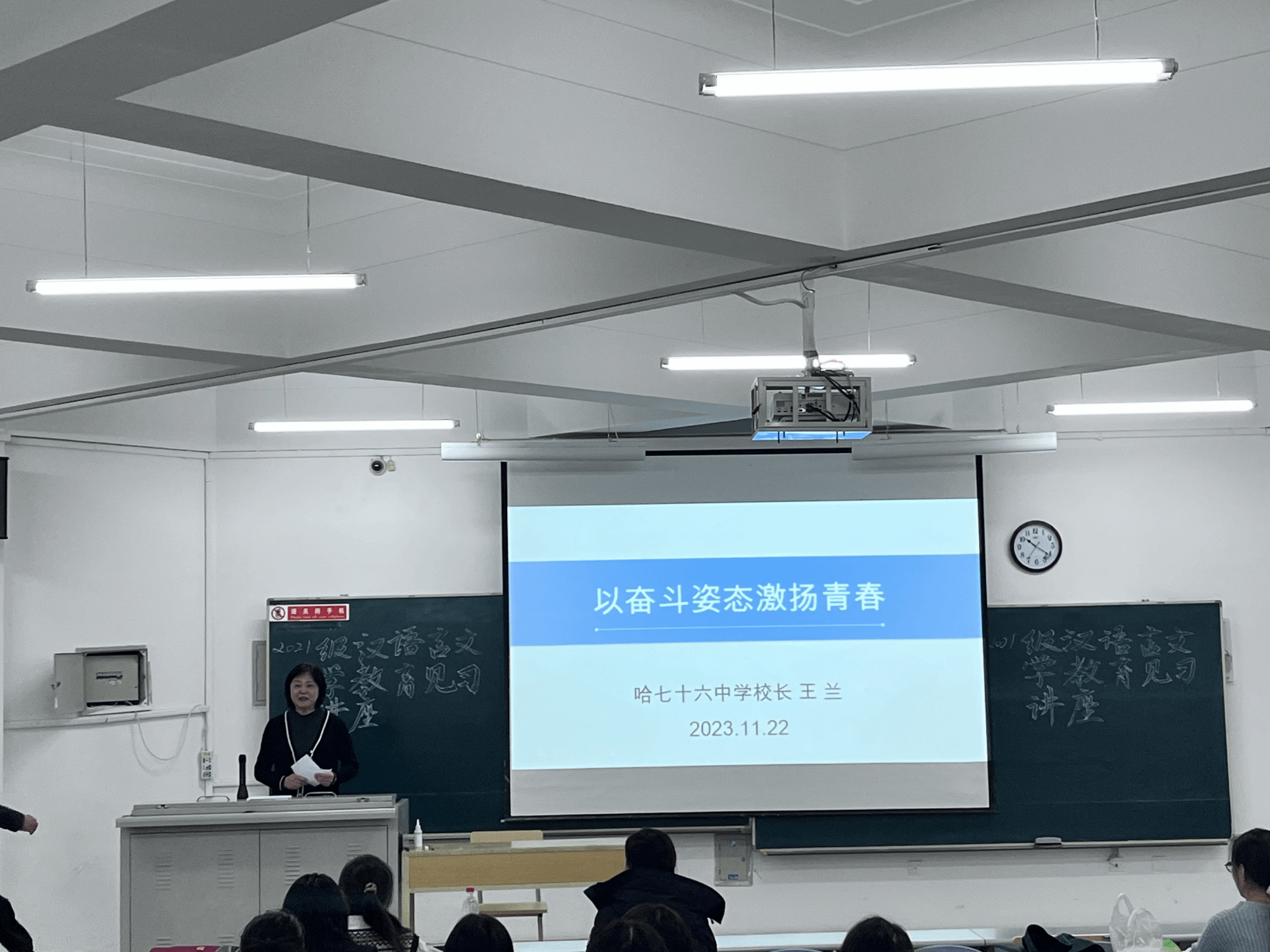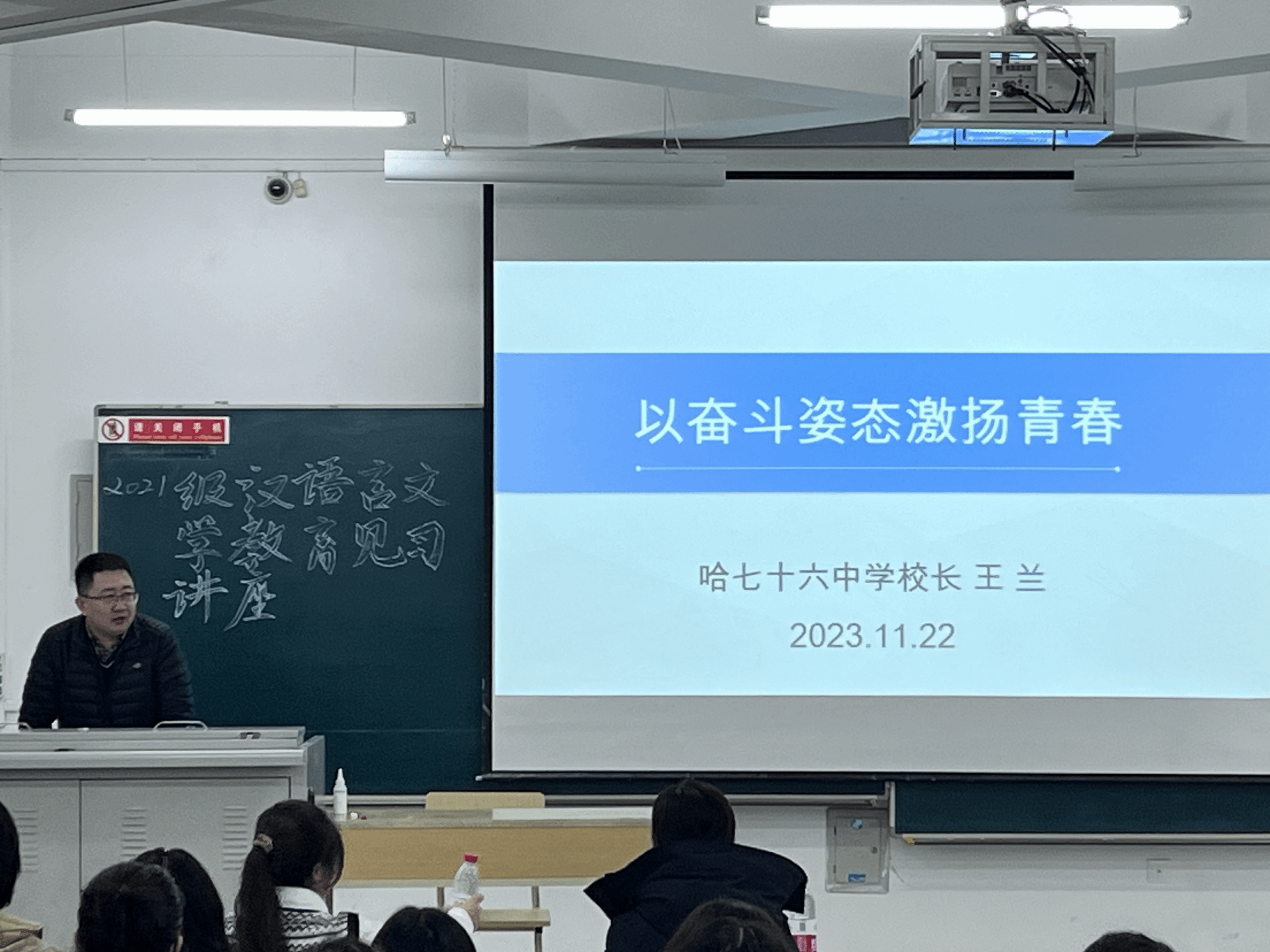 为提升我院师范类专业学生的职业道德素质,增强其职业信仰,培养爱岗敬业的奋斗精神,11月22日下午,文法学院汉语言文学专业邀请哈尔滨市优秀教师,哈尔滨市首批“千名骨干”校长,哈尔滨市第七十六中学校长王兰老师来校开展教育见习专题讲座。汉语言文学专业孙胜杰主任、张伟民老师、朱孚老师及汉语言文学2021级全体同学聆听了讲座。