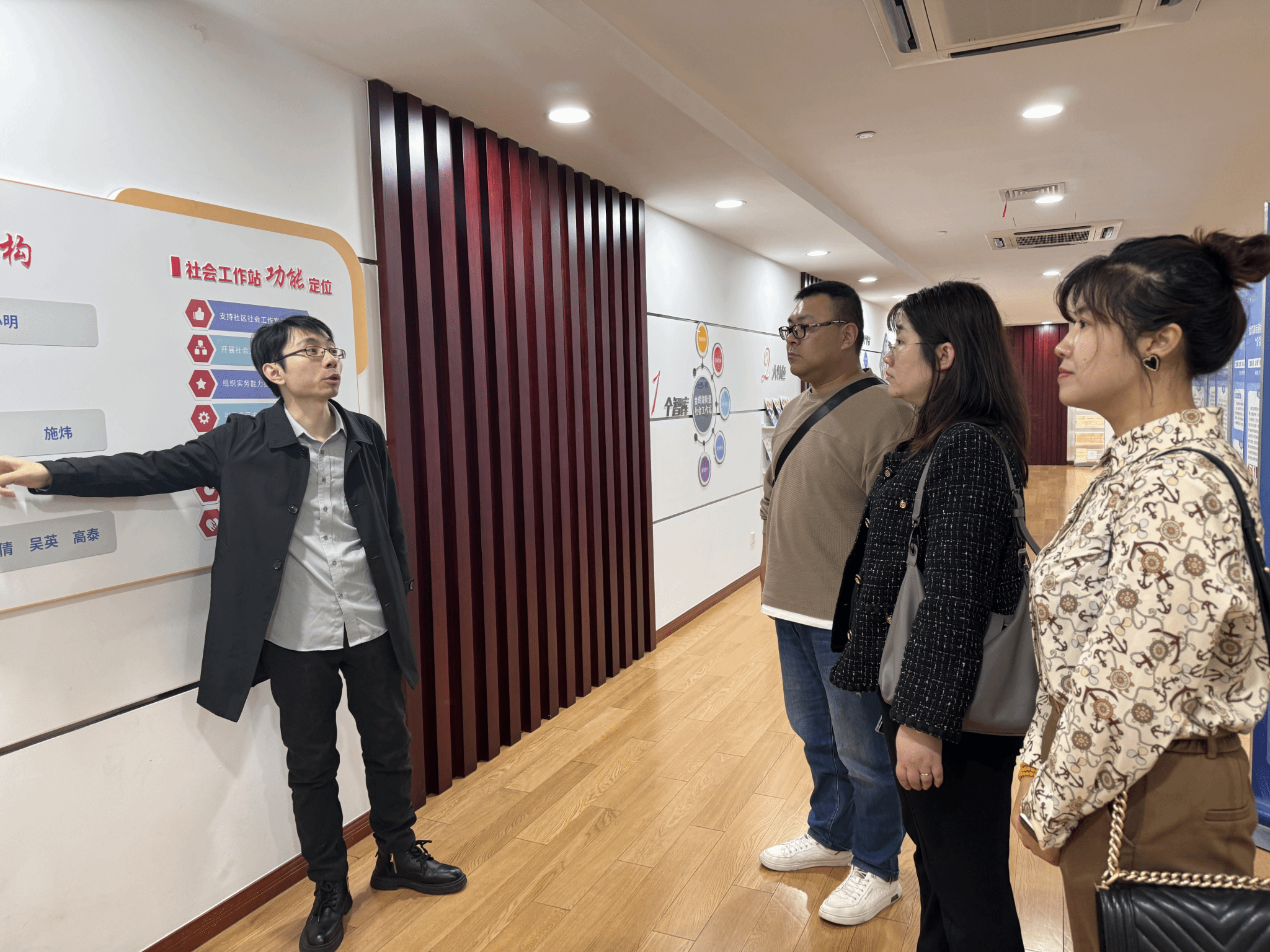 4月9日下午,在苏州走访了苏州金鸡湖社会工作服务站,了解社工服务站的运营模式和项目,金鸡湖街道社会工作室的承接方分别就机构的建设情况、擅长领域及实习生培养进行介绍,同哈尔滨学院老师就实习生待遇、工作内容及生活保障等进行详细交流。