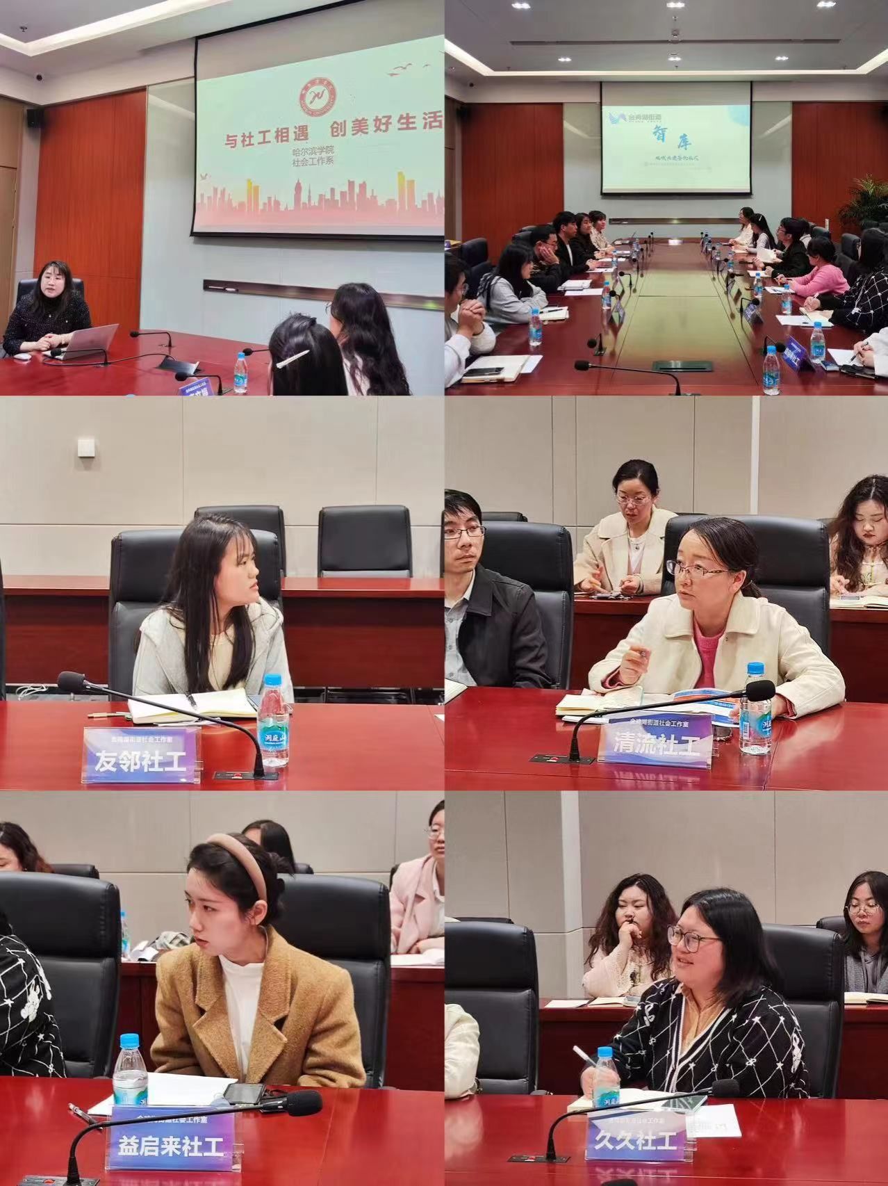 4月10日上午,在苏州走访了金鸡湖街道办事处,开展异地校社联动智库建设的联席会,金鸡湖街道办主任许翔及多家社工机构参会。联席会上黄莹老师围绕专业教师队伍、学科建设、专业实践、科研成果等内容介绍了哈尔滨学院社会工作系的基本情况,希望通过校社共建,为学生进行培养指导,双方充分发挥各自的特点和优势,谋划合作,共同推动产教融合高质量发展。