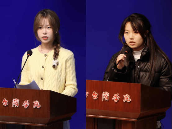 此次大赛吸引了全校百余名师生的共同参与,经过作品创作、评委评审等环节,15部优秀作品脱颖而出。这些作品题材丰富,情感细腻,技法成熟,涵盖对校园生活、社会热点、传统文化、青春记忆等多个议题的探讨,展现了哈院学子对文化、对生活、对世界的深刻理解,每一部作品都凝聚着同学们的智慧与才华。颁奖典礼上,学生代表李永巧和乔琪分享了创作上的艰辛与过程中的思考,让大家感受到了“新文科”理念和创新思维在作品创作中的融合与贯彻。
