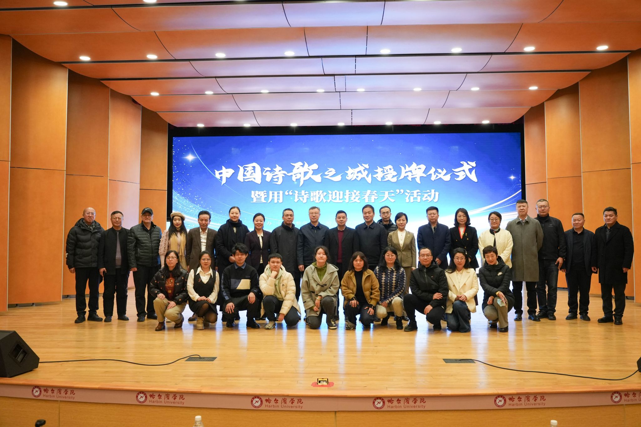 活动在哈尔滨学院音乐与舞蹈学院音乐厅隆重启幕,中国诗歌学会会长杨克、哈尔滨市委宣传部副部长杨忠萍、市文联党组书记孙建伟、哈尔滨学院党委副书记李娜等领导及百余位诗人、学者齐聚一堂。授牌仪式上,杨克会长代表中国诗歌学会,向哈尔滨市文联授予“中国诗歌之城”牌匾,标志着哈尔滨正式跻身全国诗歌文化名城行列。