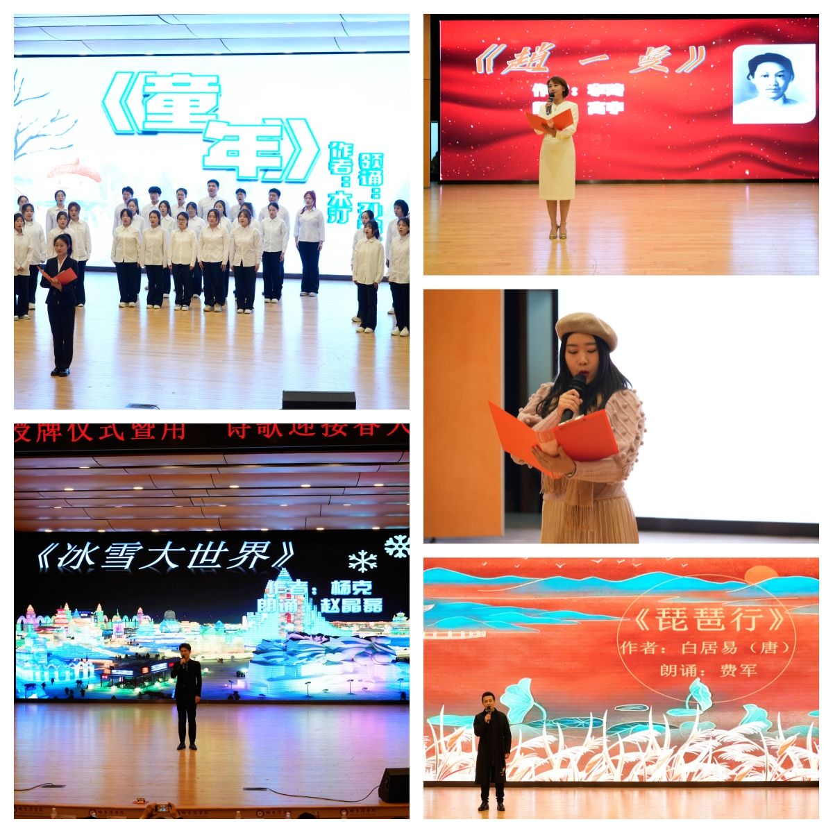 活动以“用诗歌迎接春天”为主题,呈现了一场诗意盎然的视听盛宴。哈尔滨学院师生与著名诗人联袂演绎了一场跨越时空诗歌盛宴,朗诵篇章精选古今名作,既有海子《面朝大海,春暖花开》的浪漫憧憬,白居易《琵琶行》的古典韵味,也有李琦《赵一曼》的红色情怀、杨克《冰雪大世界》的北国豪情。尤为值得一提的是,诗人杨碧薇亲临现场朗诵原创作品《给冬妮娅的信》,以细腻笔触展现哈尔滨的人文温度;诗人艾明波的《我的家乡,我的城》则以铿锵之声,道出对冰城的深情礼赞。