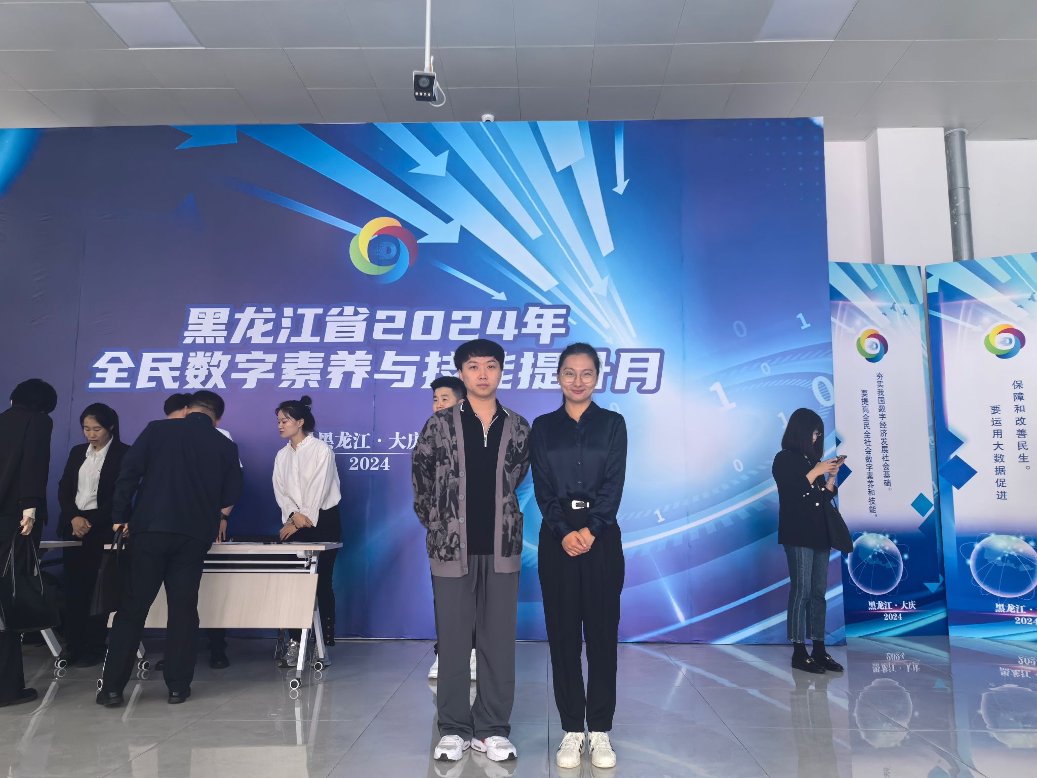 2024年是我国全功能接入国际互联网30周年,为了进一步提升黑龙江省全民数字素养,6月13日,由黑龙江省委网信办、黑龙江省教育厅、黑龙江省工信厅等14家单位共同主办的黑龙江省2024年全民数字素养与技能提升月活动启动仪式在大庆举行。我校数字素养与技能培训基地教师代表陈永妍老师、霍鑫鹏老师受邀参加了本次会议。