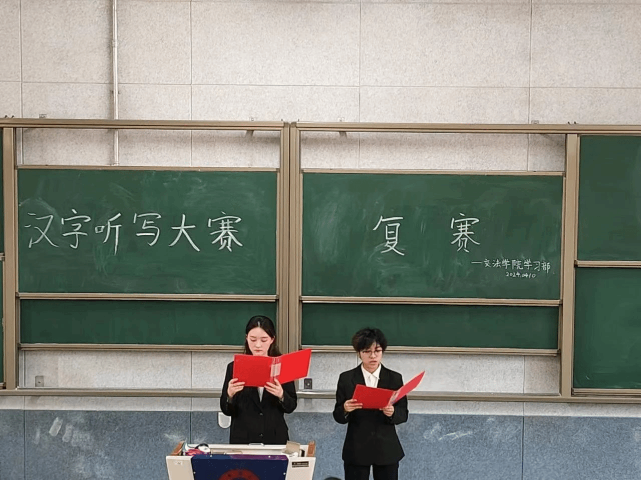 墨香萦绕,汉韵悠扬。为弘扬中华优秀传统文化,传播汉字知识、展现汉字魅力,提高文法学子的汉字规范意识与综合应用能力,文法学院于4月10日下午15:30在1454教室举办汉字听写大赛复赛,文法学院辅导员老师李轶琦出席并指导本次活动。