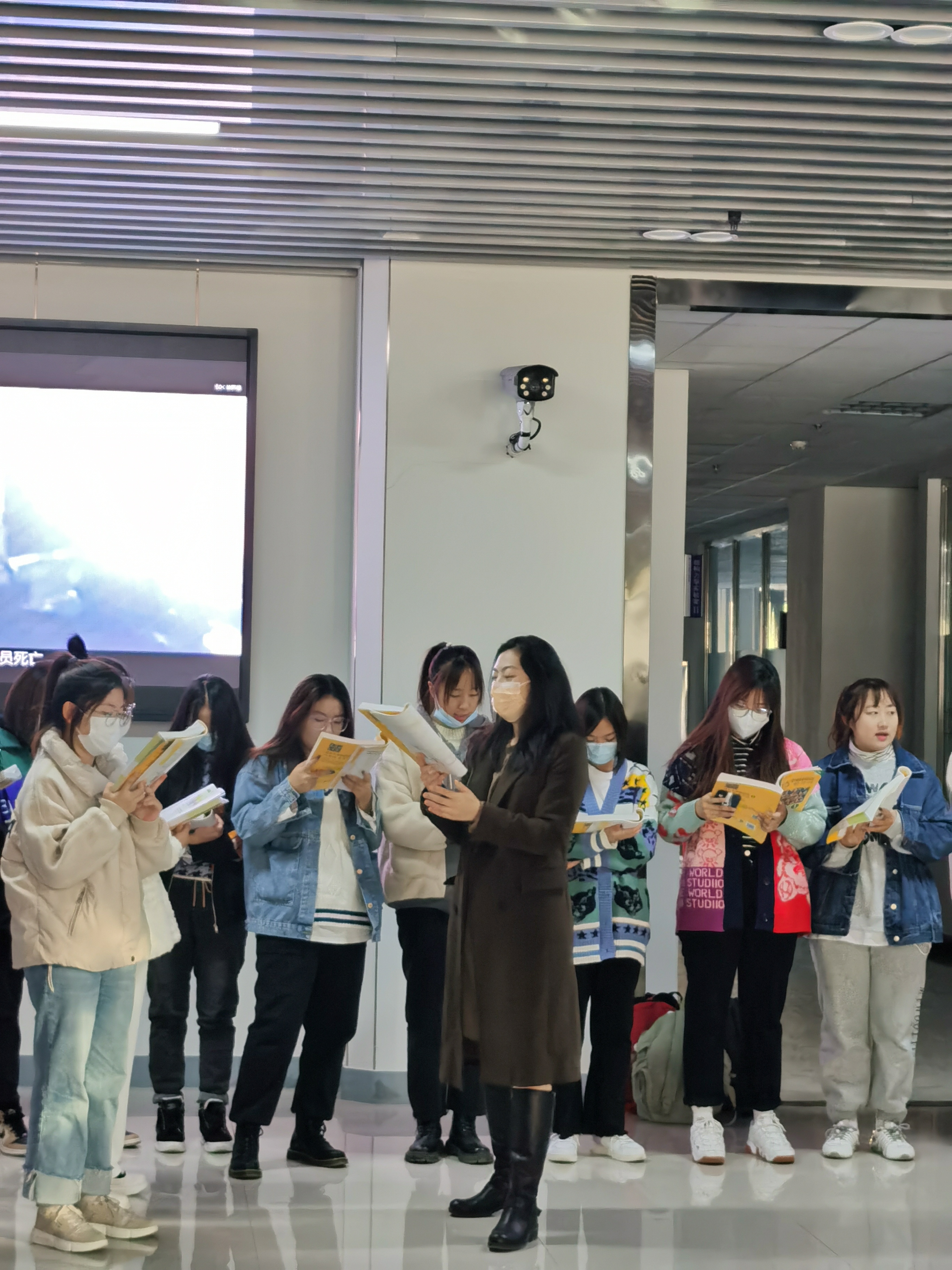 同学们在实训楼一楼大屏幕下围绕成一个大圈,韩语老师站在中央,带领同学们先从课文读起,然后是单词、对话,复习巩固以前学过的内容,让大家对书本印象更深刻,对韩语发音更熟悉。经过重复朗读,不少同学已能达到背诵效果,晨读活动达到了预期的效果,受到了同学们的一致好评。