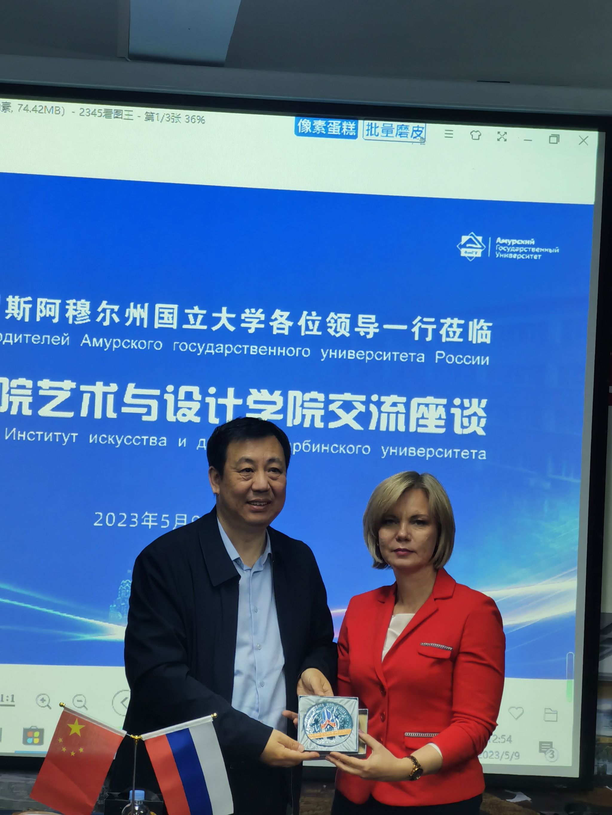 罗伊巴·娜塔莉亚女士详细介绍了阿穆尔国立大学的专业设置、师资队伍、与中国院校交流合作等情况,并诚挚邀请我校参加明年4月在阿穆尔国立大学举办的国际艺术节。她表示,双方在人才培养、文化交流等领域有着良好的合作基础和广阔的合作空间,希望双方加强多元合作,携手共赢发展,共创美好未来。