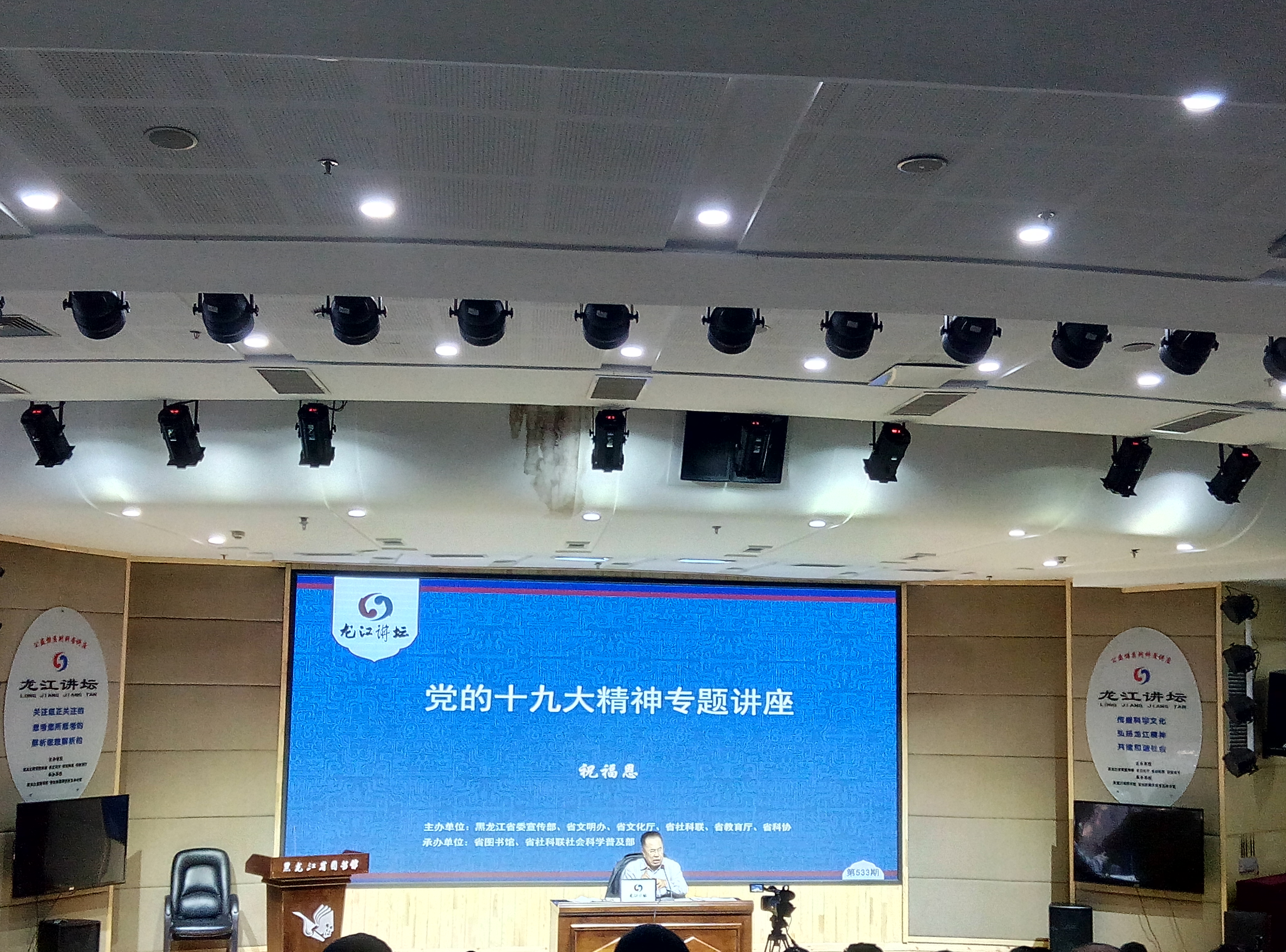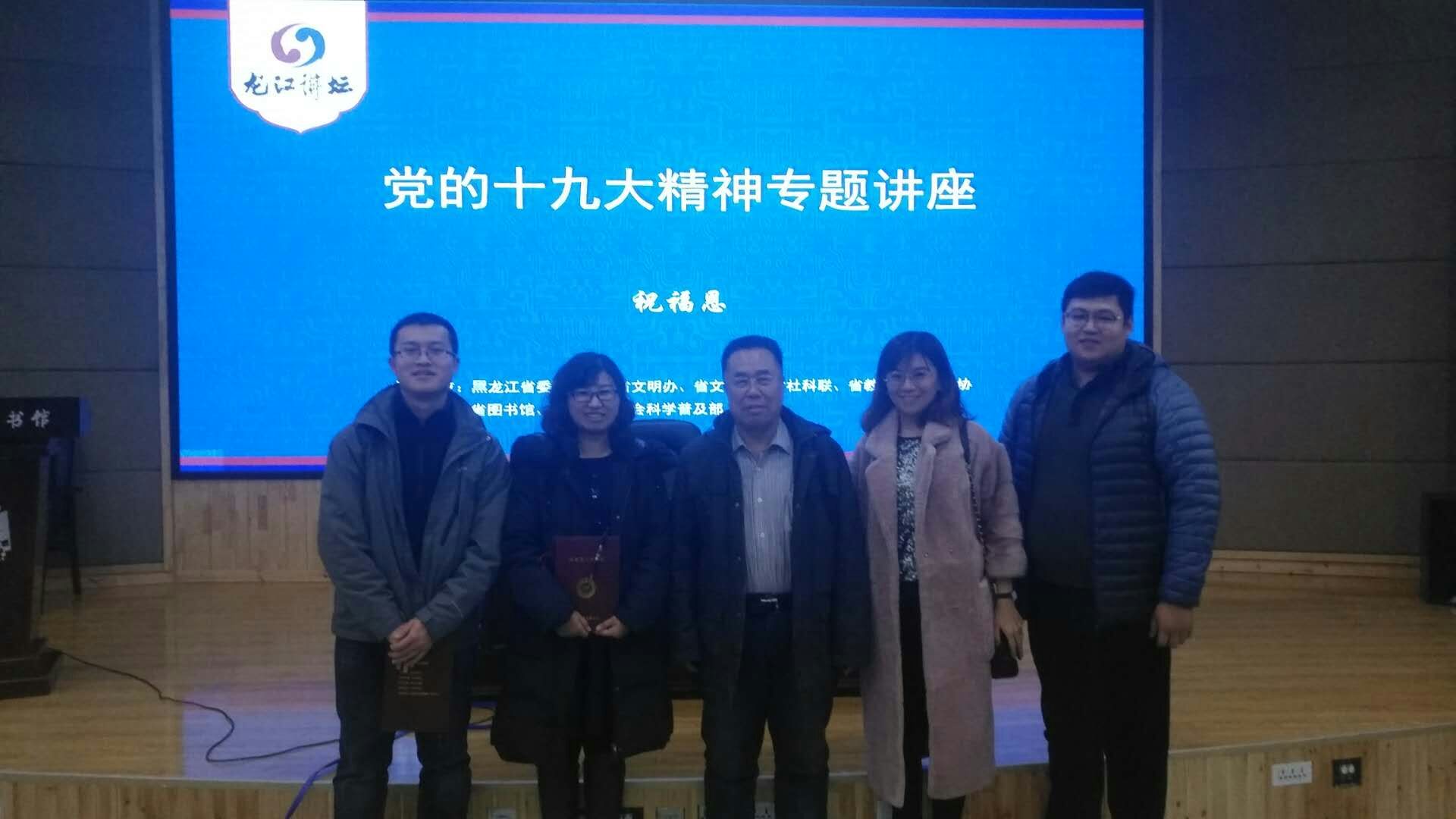 为了进一步全面理解、准确把握十九大精神实质,食品工程学院学生党支部开展“学习十九大精神”主题党日活动。2017年11月19日下午13点,学生党支部书记张玉娟,辅导员谷惠鹏、刘瑶、张楷晨带领学生党员及优秀学生干部参加了“龙江讲坛”《党的十九大精神专题讲座》。