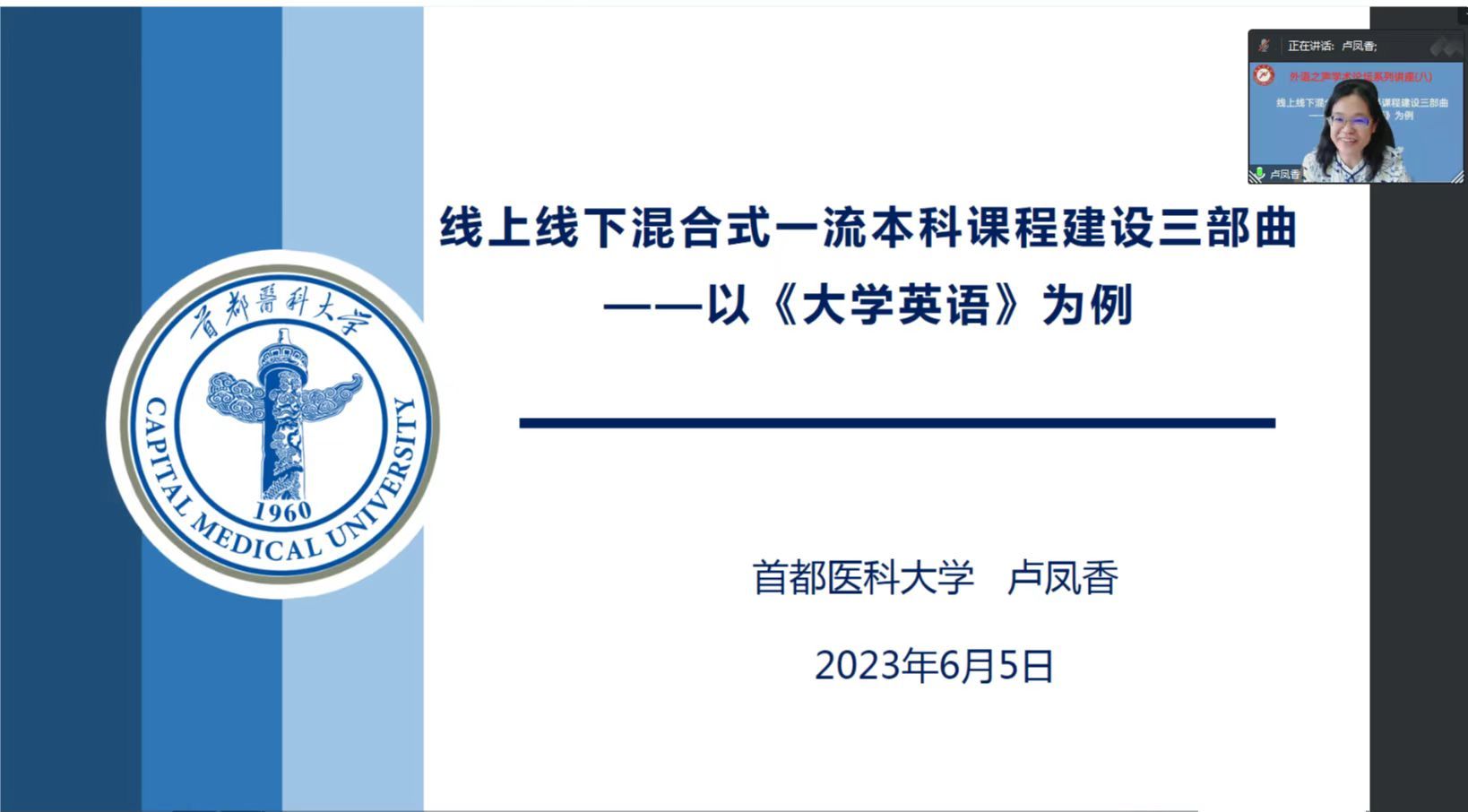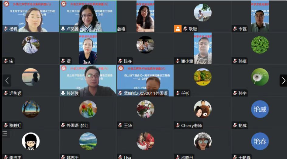 (文/耿聪)为深入落实学校学习贯彻习近平新时代中国特色社会主义思想主题教育和深化能力作风建设“工作落实年”相关工作要求,积极推进一流课程建设,切实提升课程育人功能,6月5日下午,在教务处指导下,外国语学院以线上方式成功举办了第八期“外语之声”学术论坛讲座。主讲嘉宾为北京市高等学校教学名师、首批和第二批国家级一流本科课程负责人、首都医科大学医学人文学院院长卢凤香教授。讲座题目为“线上线下混合式一流本科课程建设三部曲——以《大学英语》为例”。讲座由外国语学院院长孙延弢主持。外国语学院全体专任教师参加了此次学术讲座。