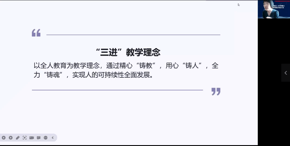 袁晶老师围绕《习近平谈治国理政》多种版本“三进”示范课程建设经验,为系内教师做了精彩的讲座。袁老师从课程建设背景、课程目标、教学模式、教学设计、教学总结、教学特色及创新点六个方面对“三进”教学理念和示范课建设过程进行了详尽的介绍,明确了“三进”示范课程建设精心“铸教”、用心“铸人”、全力“铸魂”实现学生全面可持续发展的根本原则,与系内老师交流了将中国文化融入高校商务英语专业课堂、将社会主义核心价值观融入课程建设的成功经验和做法。此次讲座为商务英语系教师课程建设的实践拓宽了思路,为课程建设中实现价值塑造和知识传授融为一体的人才培养模式、为顺应高校教育改革的新方向、落实“育人立意”价值引领的时代要求提供了新方向。