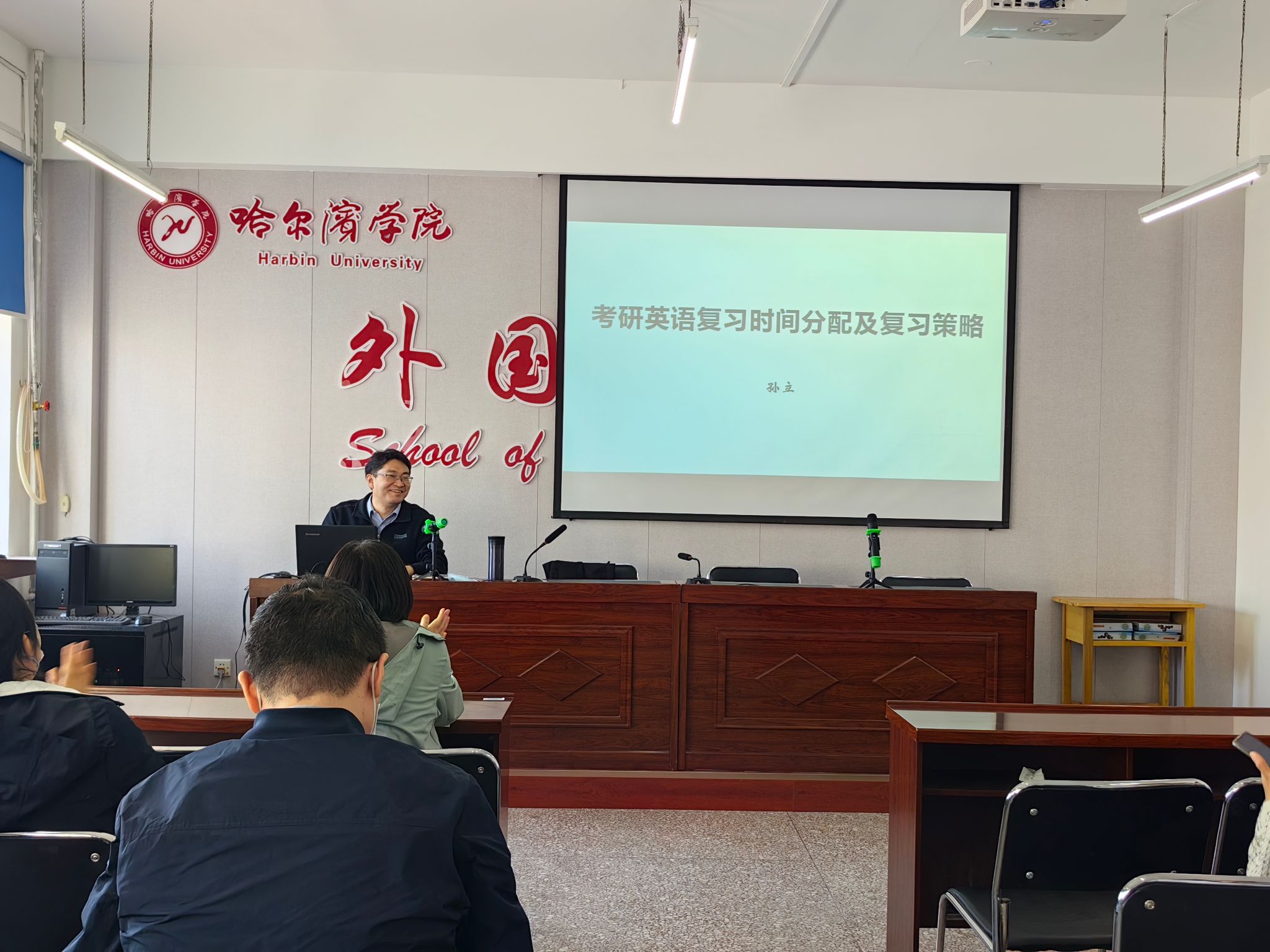2024年4月17日下午3:00,大学英语教研部全体教师相会在1号楼1527教室,共同聆听由孙立老师分享的“外语之声”学术论坛系列讲座(第22讲)。孙立老师讲座的题目是“考研英语复习时间分配及解题策略”。