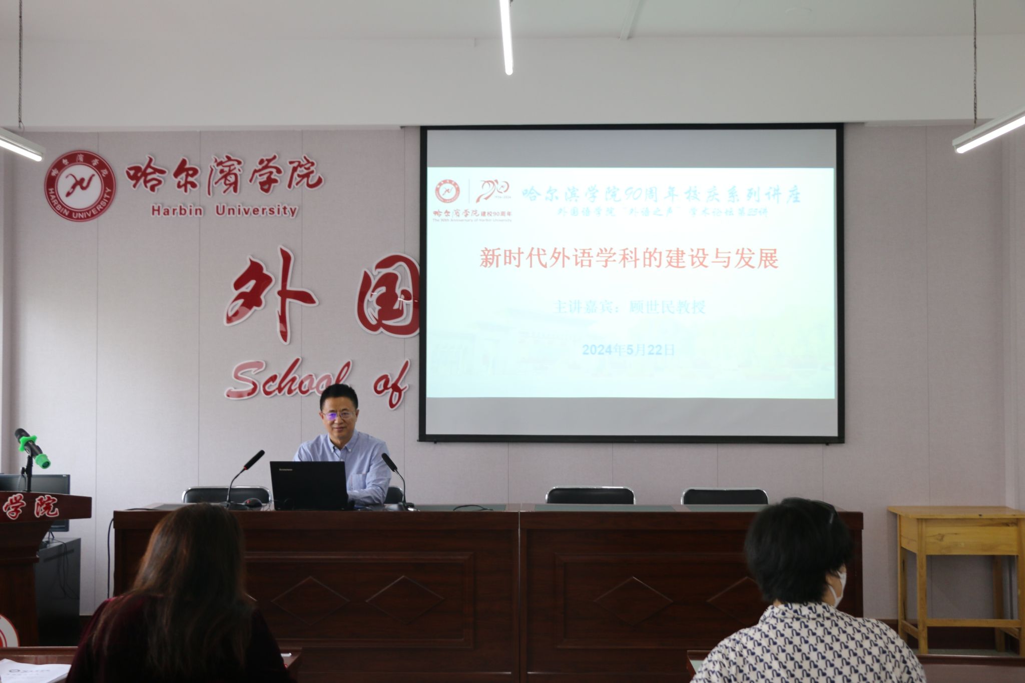 为喜迎九十周年校庆,进一步明晰新时代外语学科建设与发展的新需求与新趋势,提升学科质量与竞争力,推动外语学科在教学、科研等方面不断进步与创新,2024 年 5 月 22 日下午2:00,在1号教学楼外国语学院1527会议室,教务处和外国语学院联合举办主题为“新时代外语学科的建设与发展” 的学术讲座暨“外语之声”学术论坛第25讲。主讲嘉宾为顾世民教授。学院领导和英语专业全体师生参加了讲座,讲座由外国语学院副院长谢小童主持。