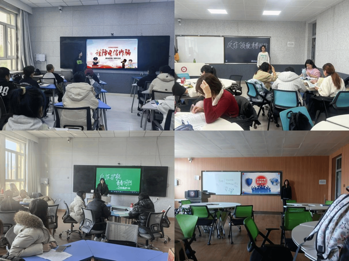 班会伊始,各班班长结合当前社会治理实际,系统剖析了电信诈骗手段迭代升级的严峻形势及衍生的多重危害,明确强调树立“防诈为先”安全理念是保障学生健康成长的基础性要求,学会保护自己,和学好专业知识一样重要。