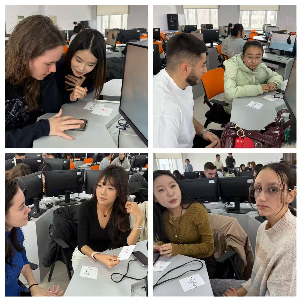 俄语专业教师宋佳美博士主讲“龙江冰城冰雪魅力”体验课,用中俄双语讲述冰雪大世界发展历程。两名俄语专业学生分别用俄语介绍哈尔滨极地馆和龙江特色美食。借助哈尔滨冰雪景观图片和视频,以及自制冰雪卡片,双方学生结对充分交流。通过讲授与研讨,增强了俄方学生对哈尔滨冰雪文化的感知了解,展示了俄语专业学生扎实的语言功底。