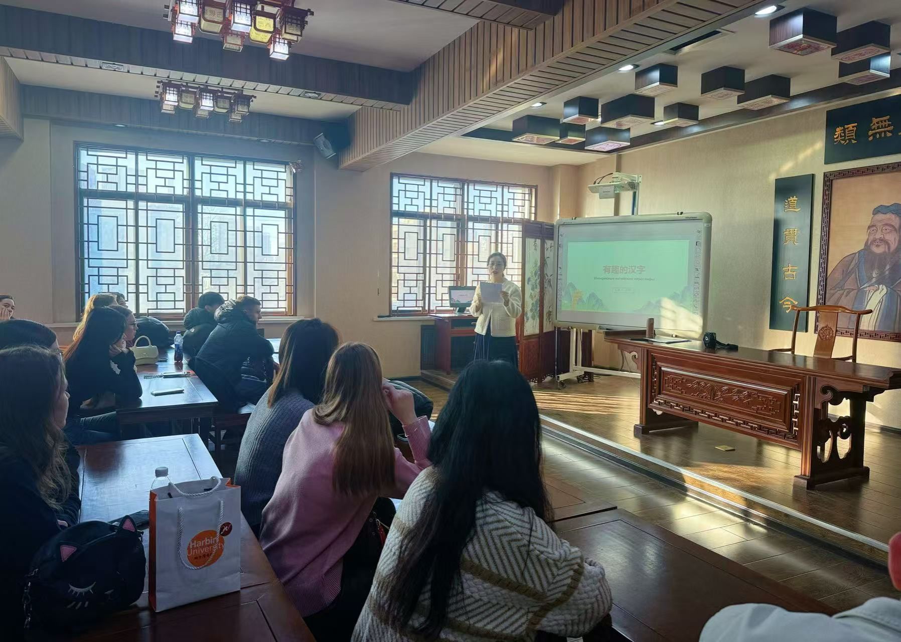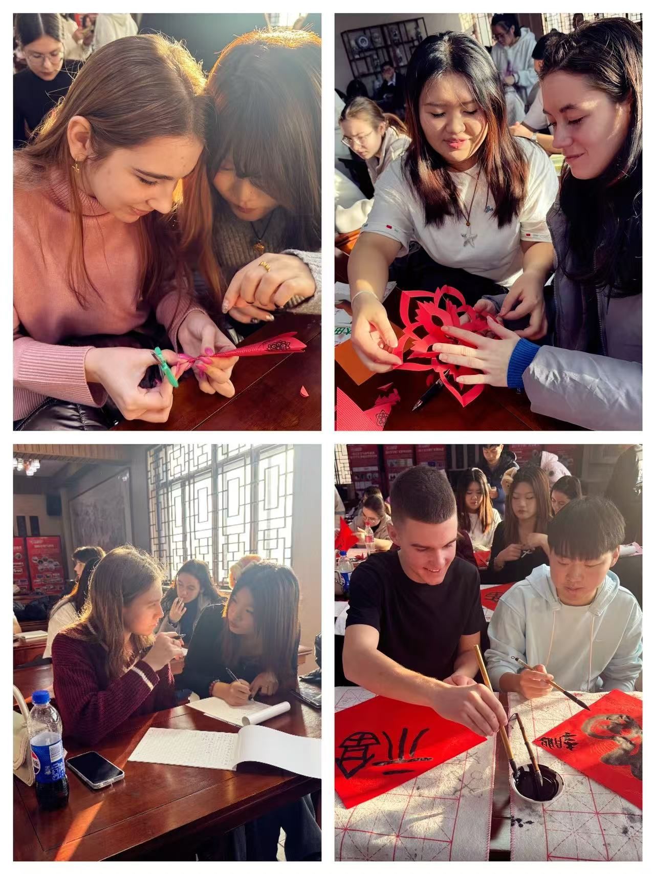 在国学堂,俄罗斯学生在外国语学院李玫、文法学院付伟刚等教师指导下,体验了汉字书写、剪纸、书法及民族舞蹈。通过本项活动,加深了俄方学生对中华优秀传统文化的了解和认同。俄语专业师生提供全程的语言支持。