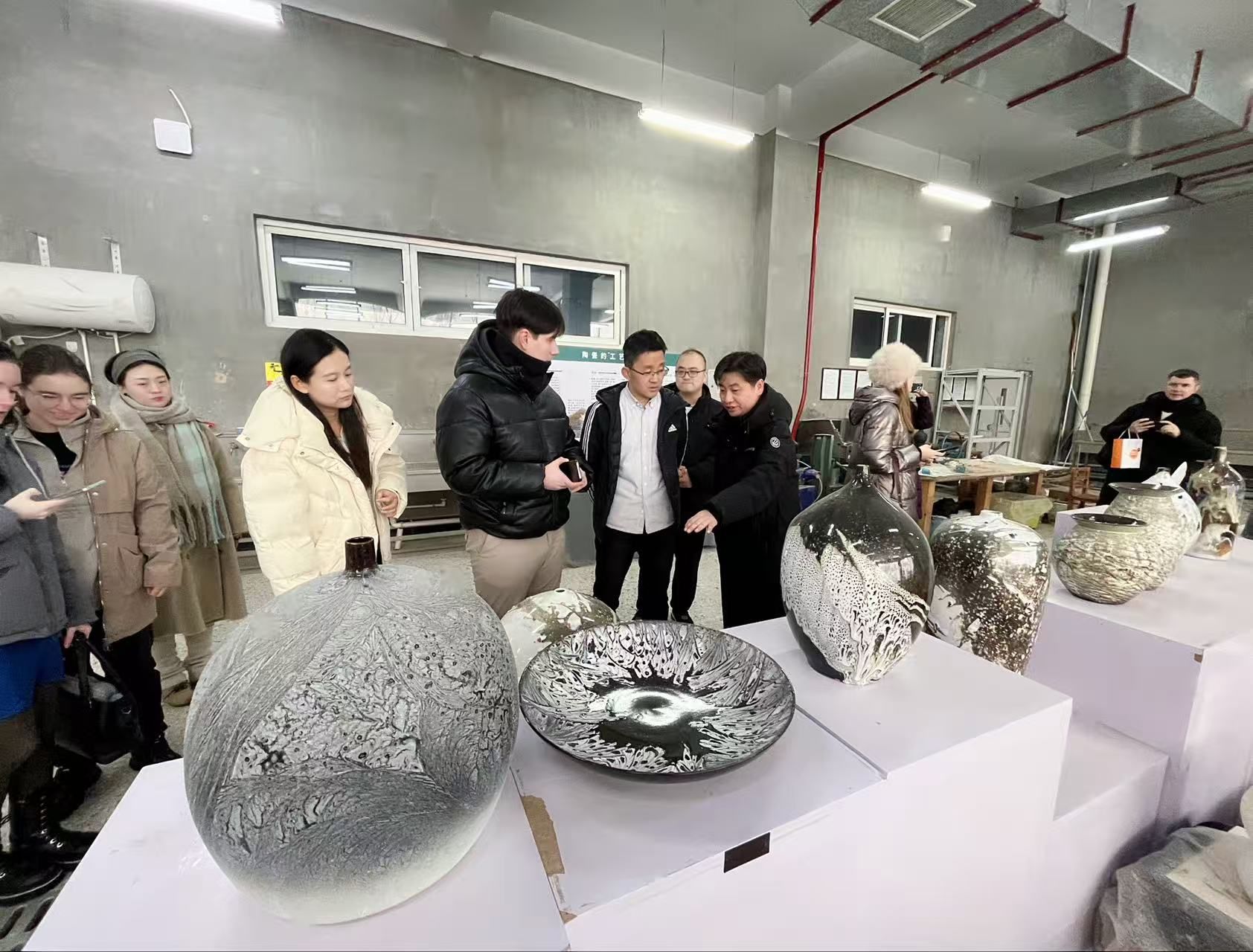 代表团参观了艺术实验中心的陶艺、油画等工作室。工作室负责人生动讲解了冰花瓷作品的内涵、制作工艺和社会影响,深入解读了百年哈尔滨油画发展史和作品价值。本项活动有力宣传了我校艺术创作成果,有效推动了中俄文化互鉴交流。俄语专业教师石山山博士全程陪同翻译。