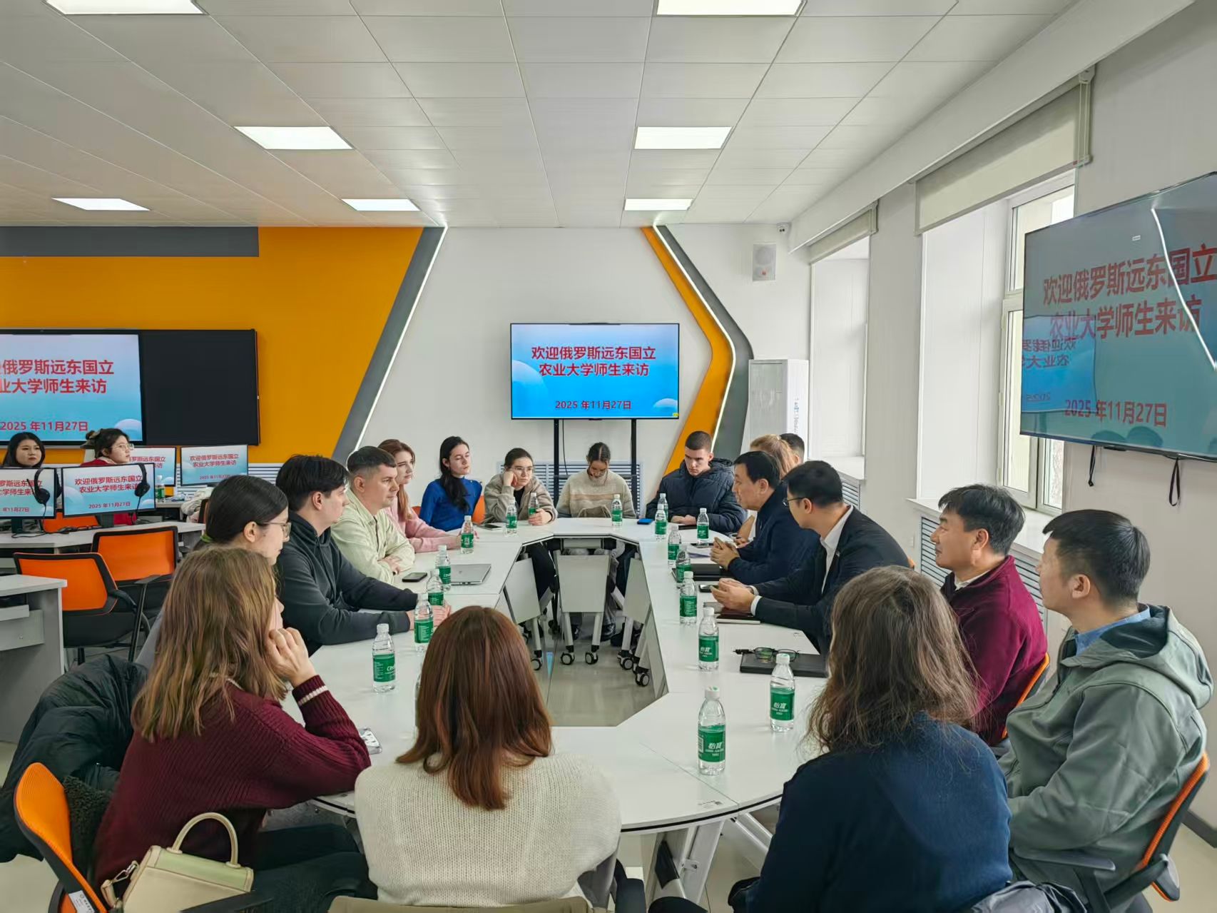 (文/袁晶)11月27日,由俄罗斯远东国立农业大学副校长叶夫根尼带队的研学代表团一行12人访问我校。副校长孙红镱出席见面会。对外合作交流处、外国语学院、文法学院、艺术与设计学院共同接待,并提供了丰富的研学活动。作为此次活动的主要承担单位,外国语学院俄语专业近20名师生提供一对一全程语言服务。
