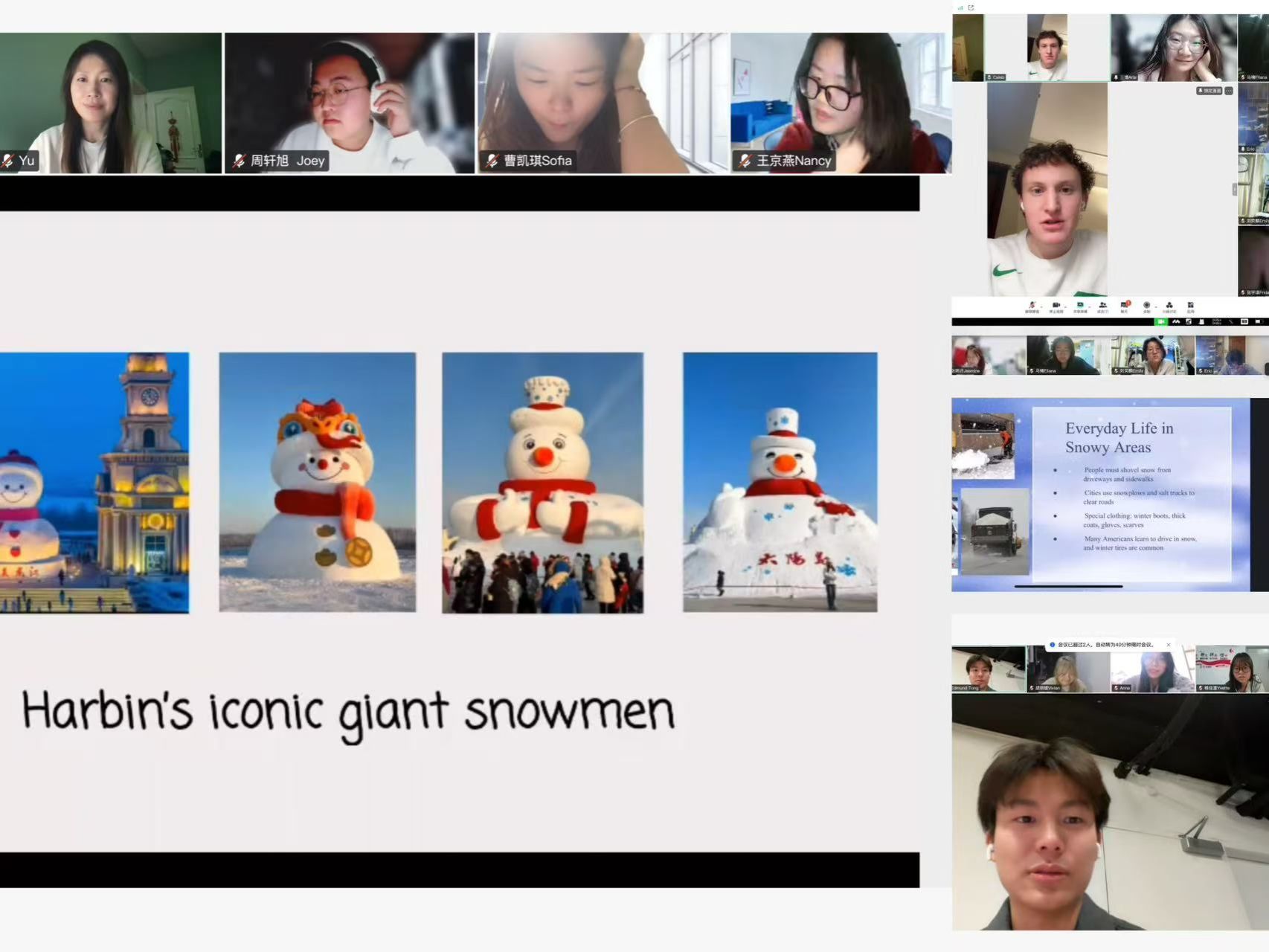 12月16日下午,我院俄语系与俄罗斯彼得罗扎沃茨克大学成功举办线上“哈院中俄冰雪育人圆桌派”。中俄十名学生分别使用对象国语言,生动展示校园生活与本土冰雪文化,实现了真诚对话与情感共鸣。
