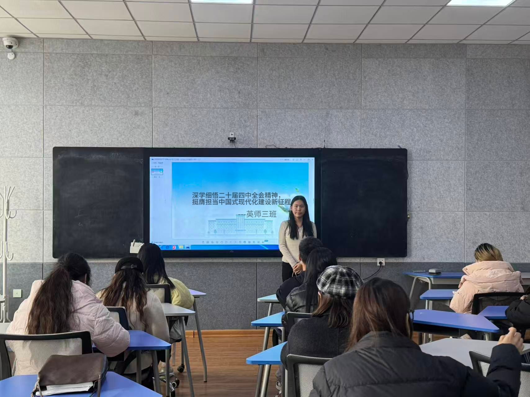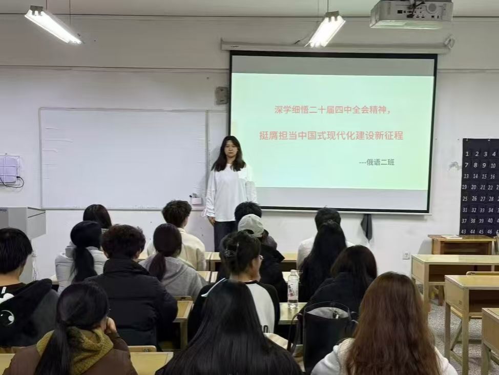为深入学习领会党的二十届四中全会精神,引导青年学生准确把握国家发展大局与时代使命,外国语学院于12月11日—15日组织2024级、2025级各班级召开“学习贯彻党的二十届四中全会精神”主题班会。