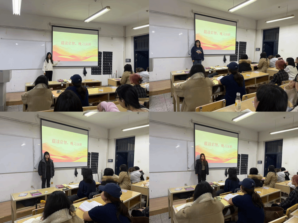 活动伊始,2025级商务英语一班的吴抒函、赵乙函、董雨菲、白玉琦四位优秀学生代表依次发言。他们围绕优良学风建设,结合自身专业学习经历,系统梳理了高效学习方法和时间管理技巧,生动阐释了班风学风对个人成长和学业提升的重要意义。真挚的分享引发了在场同学的共鸣,也为大家提供了宝贵的经验借鉴。