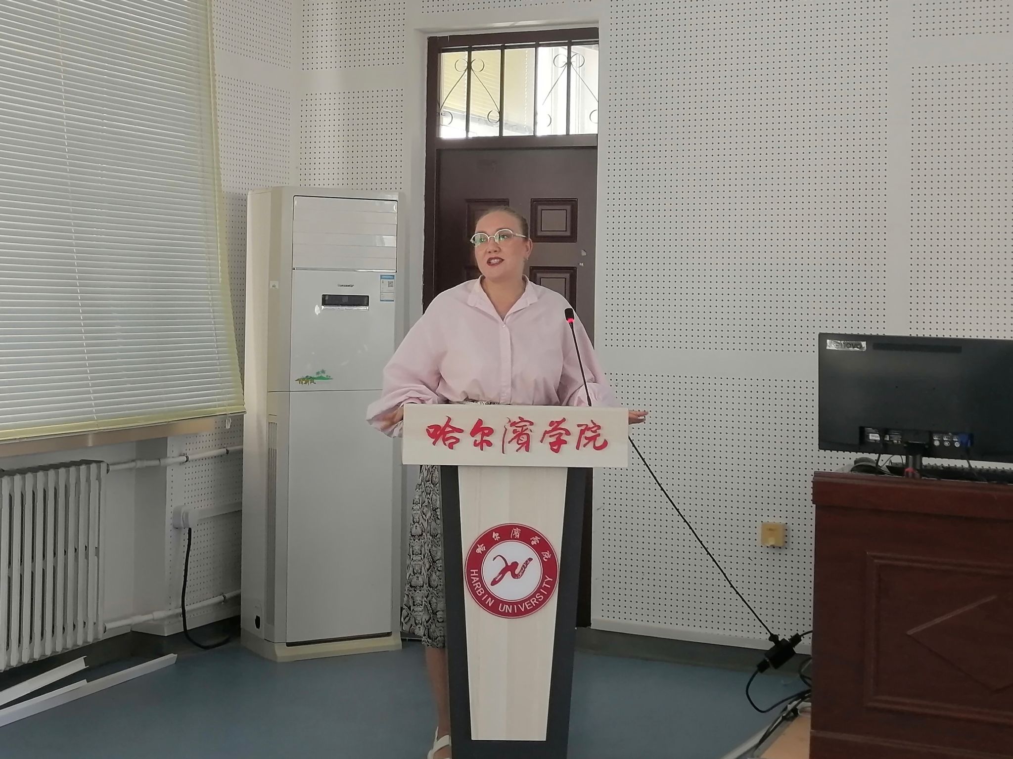 俄语系教师代表Даля和Наталья出席会议并发言,外教老师们表示非常高兴在哈尔滨学院与新生们见面,希望接下来的日子里学生们可以带着热情和兴趣学习外语,并且在学习中要加强听说读写的能力。