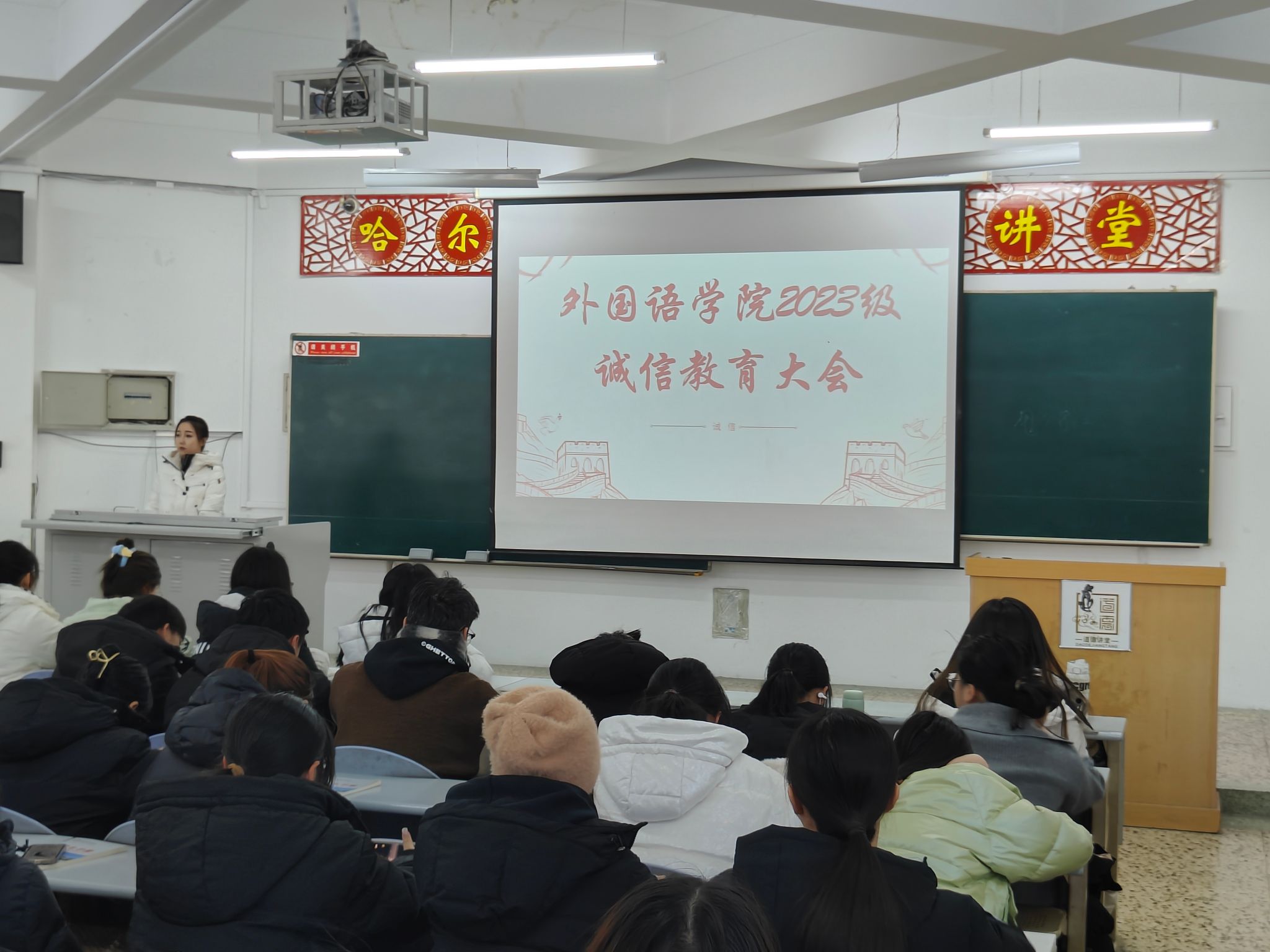 为了培养外语学子们的诚信意识和责任感,引导学生树立正确的考试观念,提高心理素质,提升学生自我保护意识,12月13日外国语学院2023级辅导员林薪宜老师在5338组织召开本次大会。