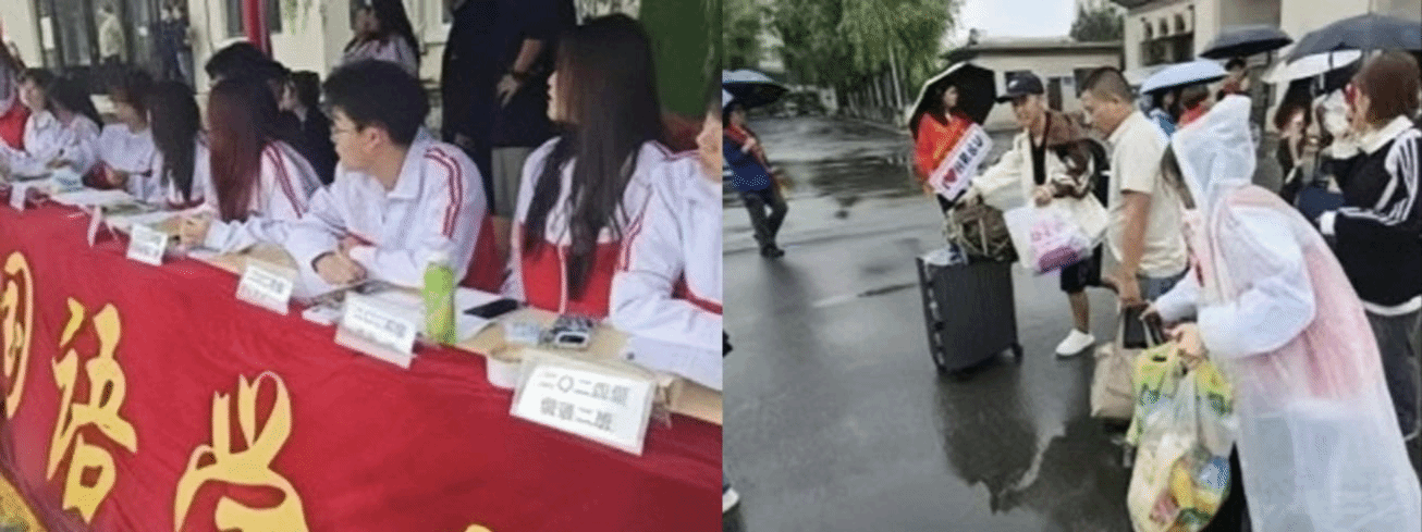 迎新活动热烈而温馨,身着统一的外国语学院院服的志愿者们面带微笑、手持指引牌,成为亮丽风景线。虽遇细雨,却未减热情,他们准备雨具、护送新生及家长,协助搬运行李至报到处,确保报到流程轻松完成。在报到处,志愿者耐心指导新生填写信息、核对资料,分工明确、井然有序,减少等待时间,还发放入学礼物并送上祝福和鼓励话语。