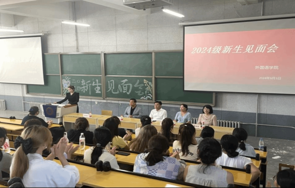 为帮助2024级新生对学院文化及外语学习环境进行全面了解,尽快适应大学生活。9月3日,外国语学院在1454教室召开新生见面会,衷心欢迎四面八方汇聚于此的2024级新生们。外国语学院院长孙延弢、党总支书记冯丽杰、副院长谢小童、副院长龚柏岩、英语系教师代表Inna以及外国语学院全体辅导员老师出席本次会议。会议由外国语学院辅导员老师安思泰主持,2024级全体学生参加。
