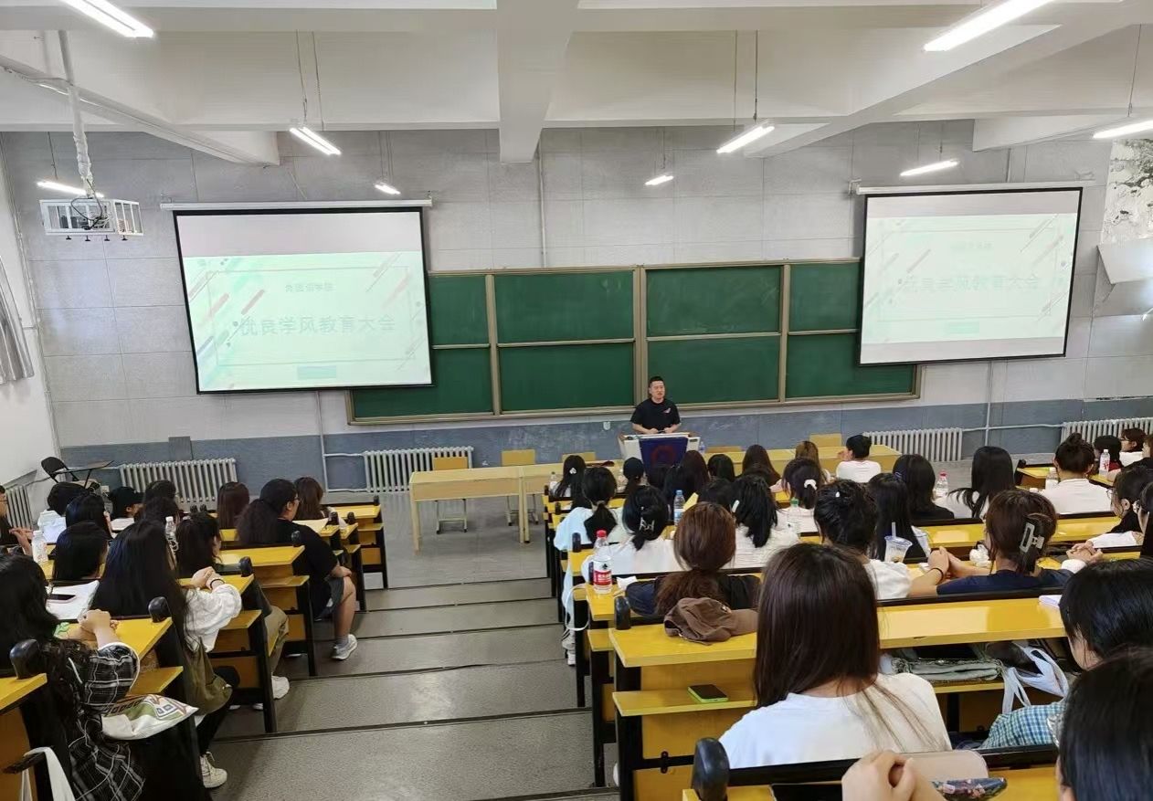 副教授辅导员盖铁生老师开展了优良学风教育主题活动。会上,他强调了优良学风对学院发展及学生成长的重要性,通过讲解学生干部的优秀事迹,激励同学们树立正确的学习观念。本次优良学风教育主题活动的开展有效增强了学生的学习意识和自我管理能力,进一步推动了学院学风建设,激发了学生们的学习动力。