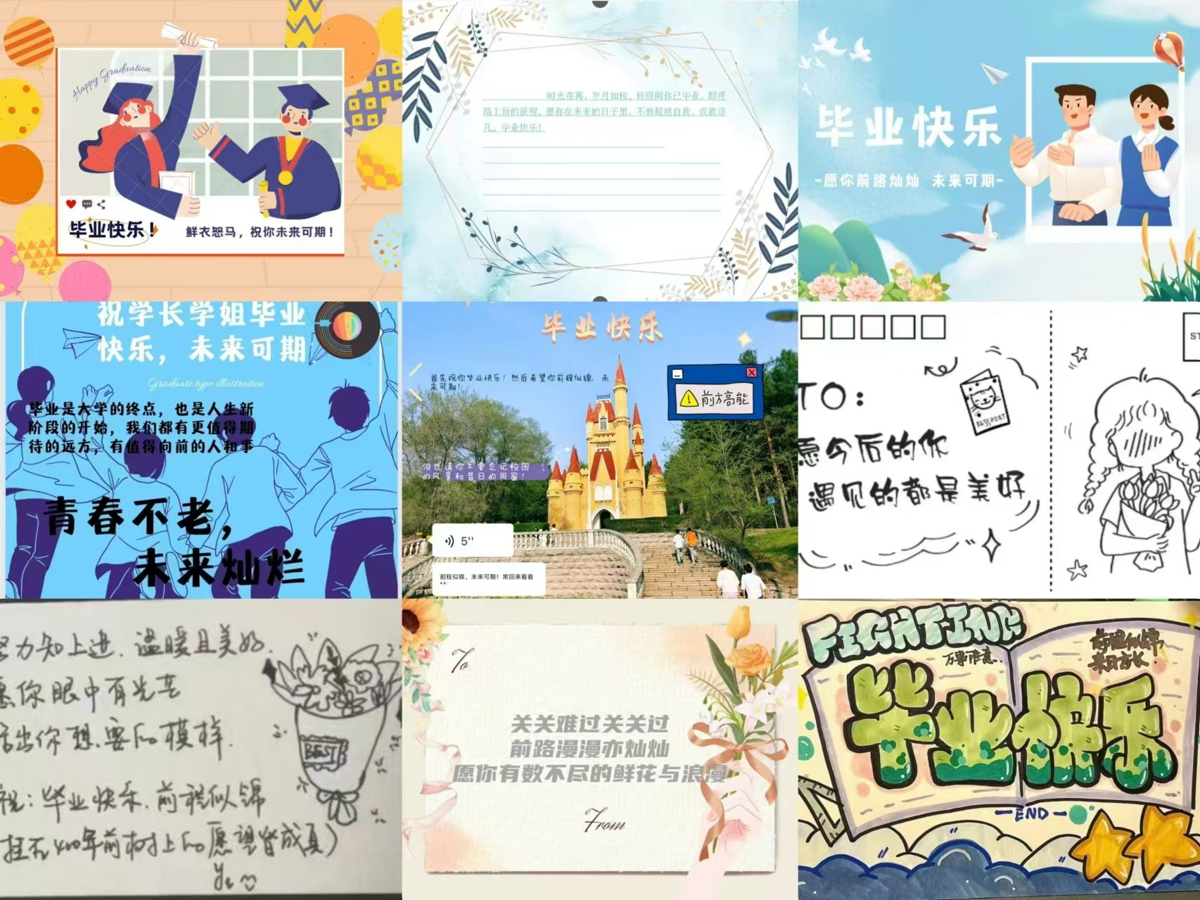 2024届毕业生们纷纷挑选自己心仪的贺卡,也在贺卡上写下了对同窗好友、恩师的感激之情和美好祝愿。他们用文字深情回顾了大学四年的点点滴滴,并通过绘画展现了校园生活的五彩斑斓,每一笔、每一划都充满了对学校的真挚情感和深深眷恋。