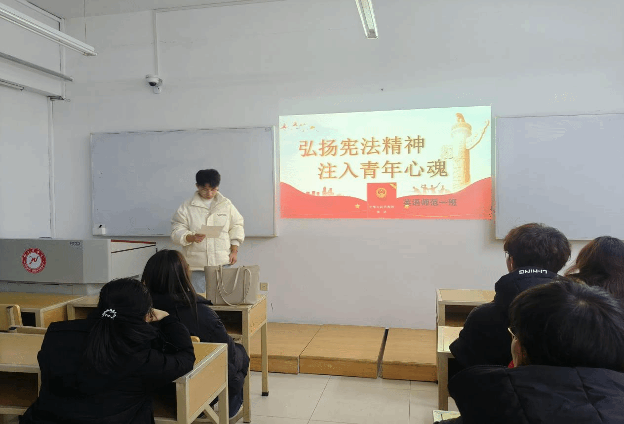 学院利用早读时间,组织学生开展宪法晨读活动,选取宪法部分章节进行朗读。同学们在朗朗书声中感受宪法的庄严与权威,进一步加深了对宪法条文的理解和记忆。各班级还召开了宪法主题班会,由班长带领同学们深入学习宪法的基本内容、重要意义和精神实质。通过小组讨论等形式,引导同学们思考宪法在日常生活中的体现和应用,激发同学们学习宪法的兴趣和热情。在本次宪法学习活动中,我院借助教育部全国青少年普法网直播资源,组织师生集中观看学习。直播中专业的讲解、生动的案例剖析,使学生们深入领会宪法内涵与重要意义。