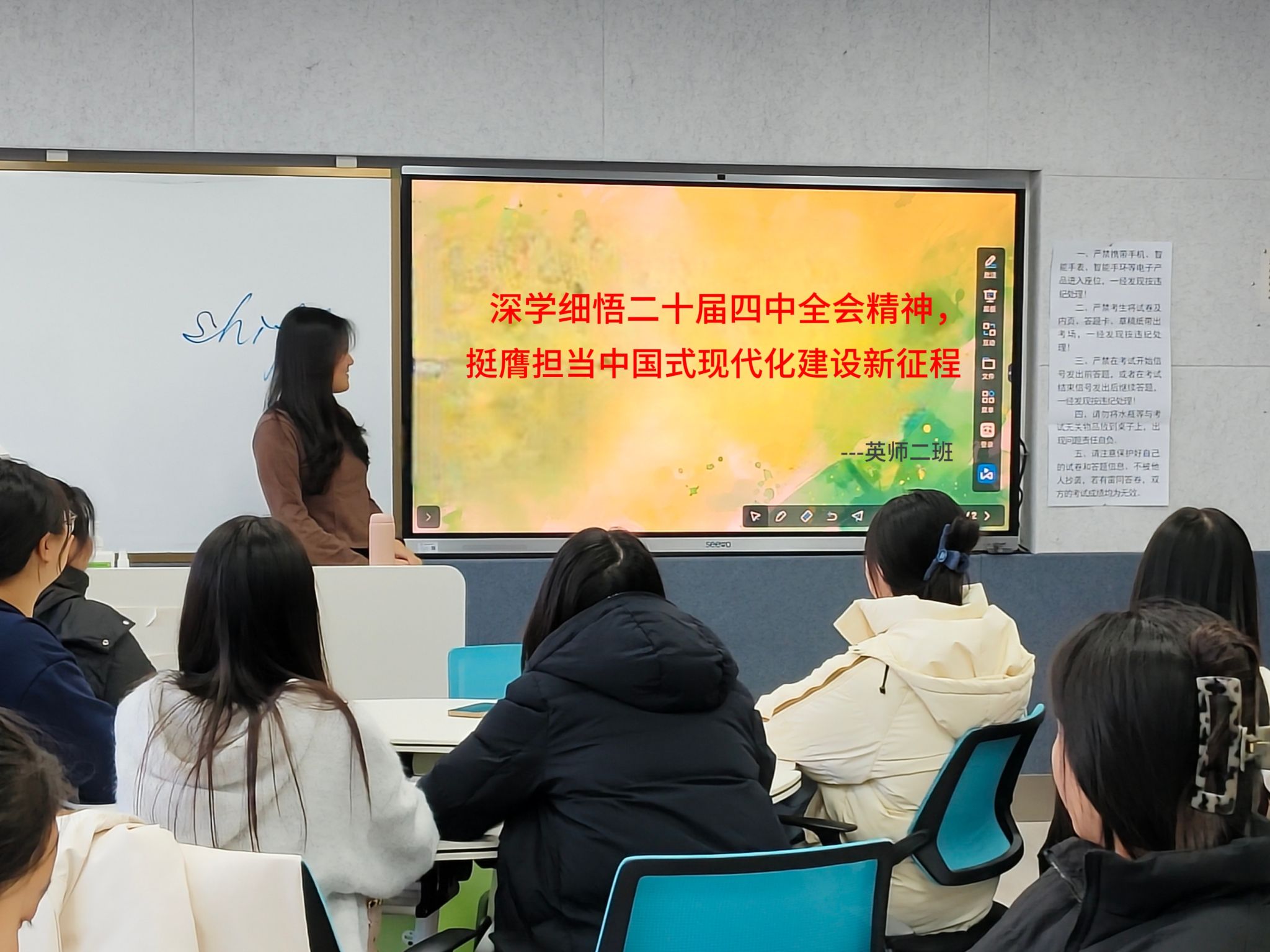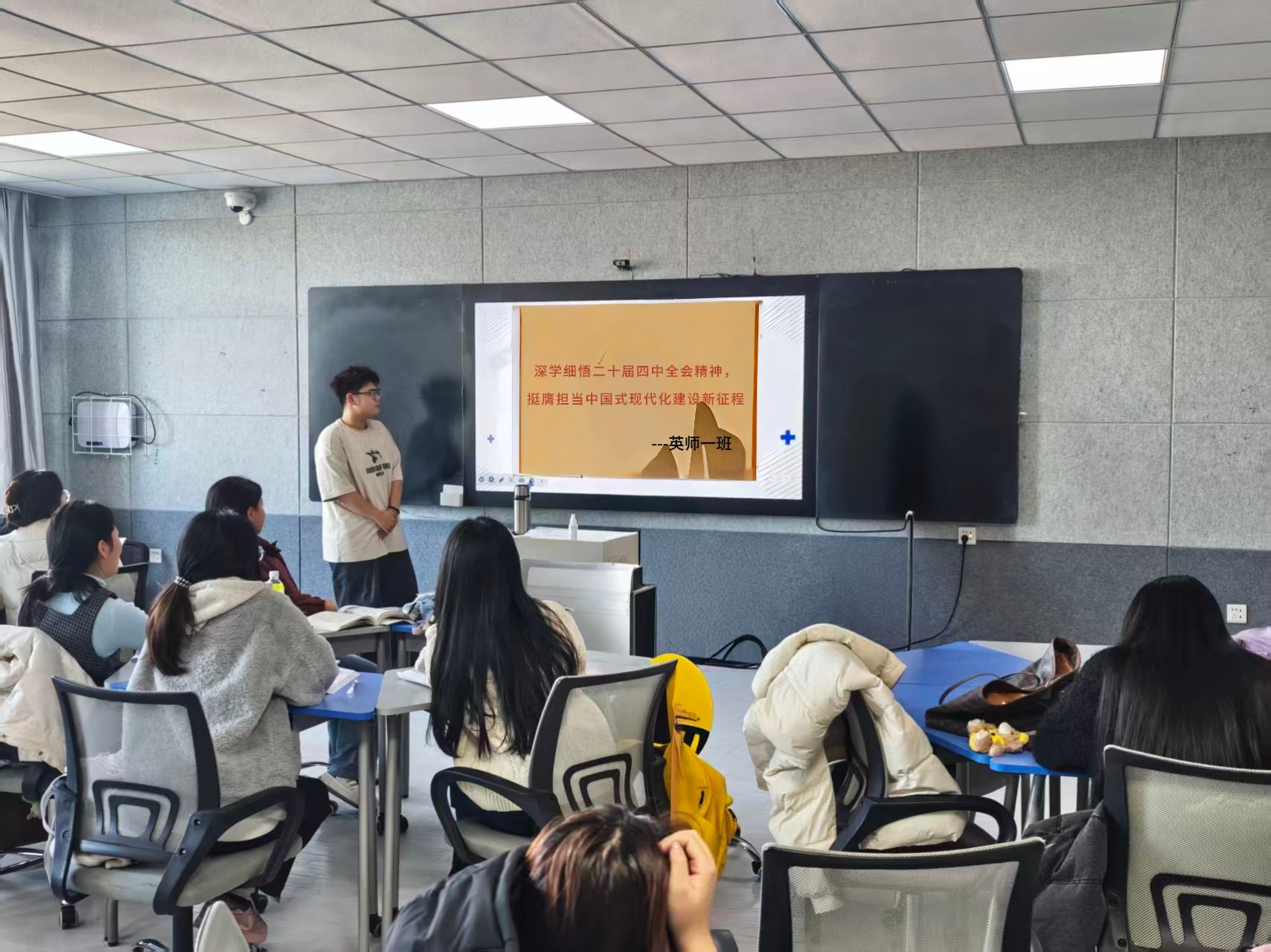 为深入学习领会党的二十届四中全会精神,引导青年学生准确把握国家发展大局与时代使命,外国语学院于12月11日—15日组织2024级、2025级各班级召开“学习贯彻党的二十届四中全会精神”主题班会。