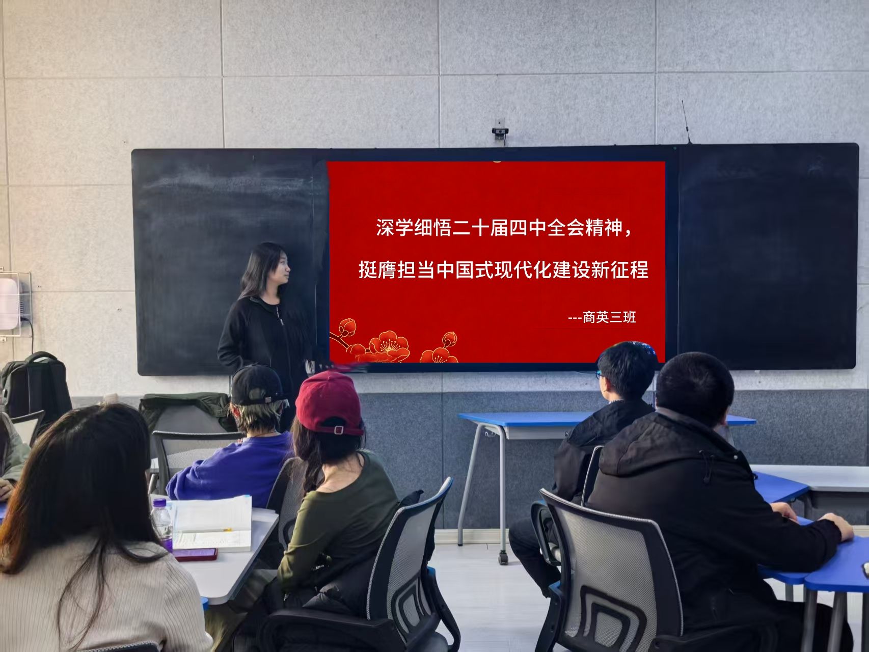 班会围绕党的二十届四中全会的重大意义、核心要义与实践要求展开。各班班长带领同学们集中学习了全会公报及相关解读材料,系统梳理了坚持和完善中国特色社会主义制度、推进国家治理体系和治理能力现代化等重点内容。