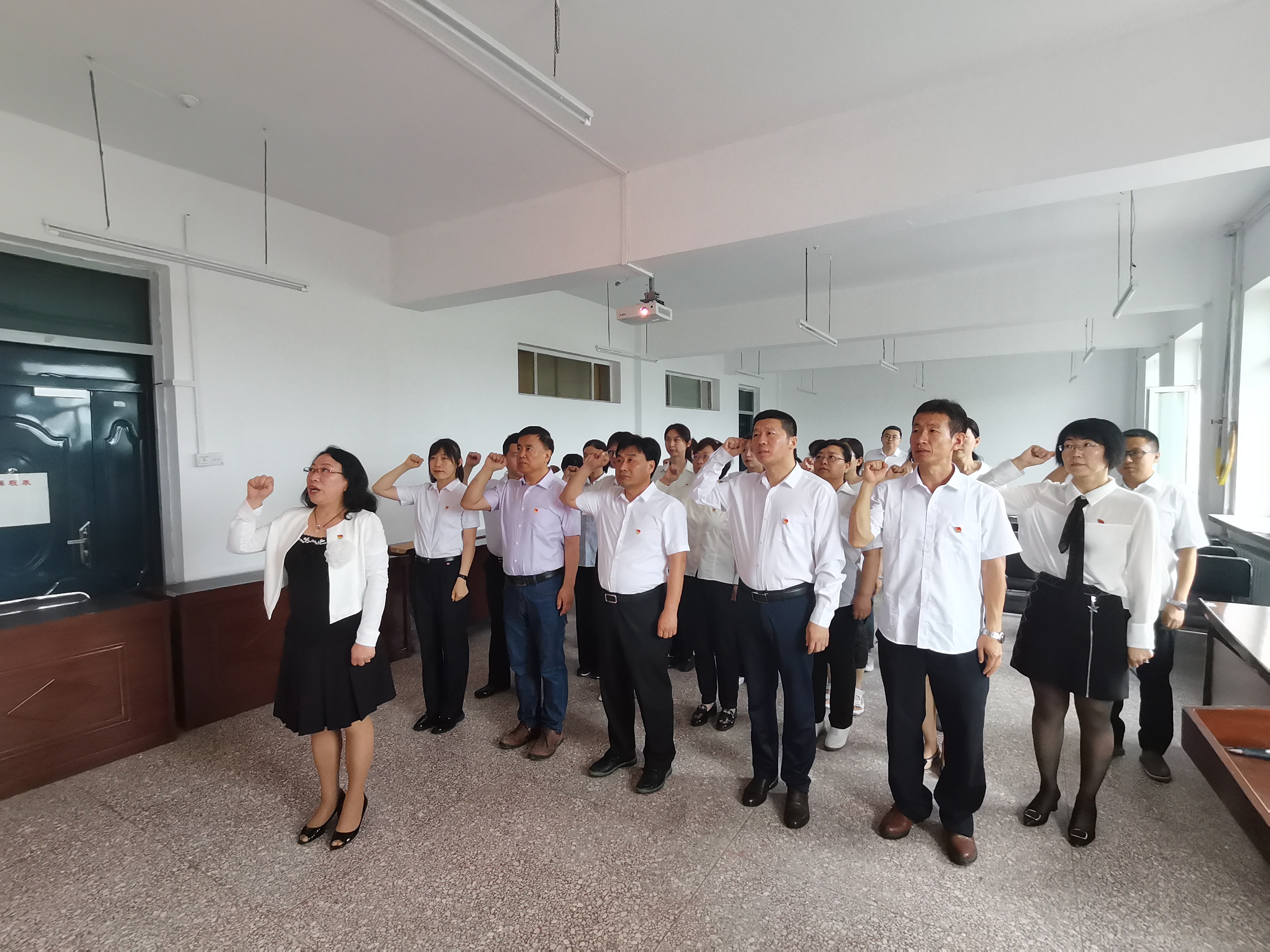 随后,大会第二项开展了“重温入党誓词,重忆入党初心”的主题活动。活动上,全体党员面对党旗举起右拳庄严宣誓:“我志愿加入中国共产党,拥护党的纲领,遵守党的章程,履行党员义务,执行党的决定……”,铿锵有力的声音传达出了身为共产党员的自豪感和使命感,展示了外国语学院全体党员为党和人民的教育事业奋斗终身的不变理想和追求。通过此次重温入党誓词活动,激发了党员教师的荣誉感、责任感和使命感,增强了党性观念,铭记了入党初心,大家纷纷表示将更加坚定理想信念,忠实践行入党誓词。