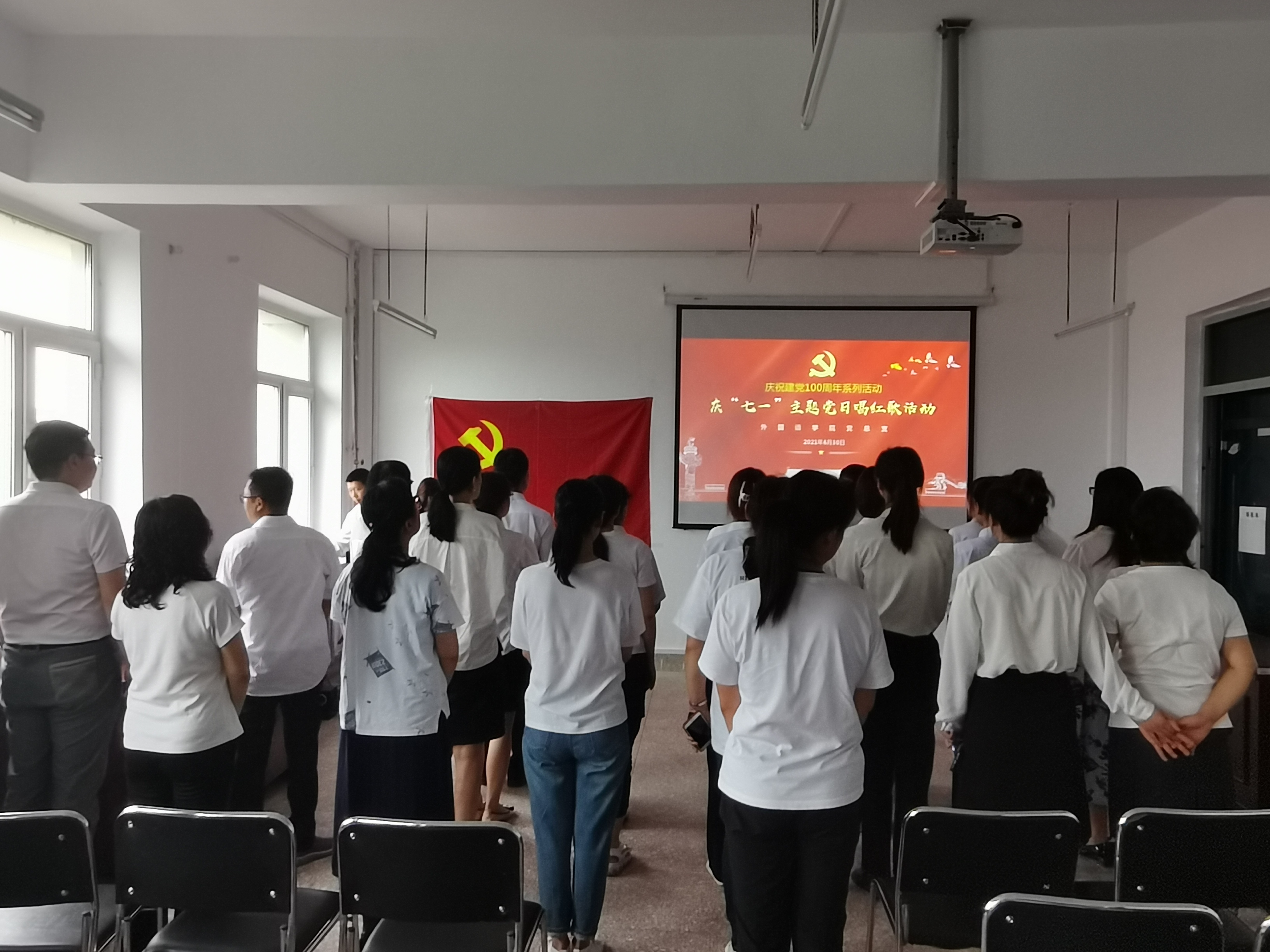 接下来,进行了“庆七一唱红歌”活动,以此激发党员教师爱党爱国爱人民爱社会主义的热情,振奋精神、凝聚力量,活动在全体党员教师共同合唱《没有共产党就没有新中国》中完美落幕。最后,全体党员教师到1号楼前在建党100周年图标前合影留念。