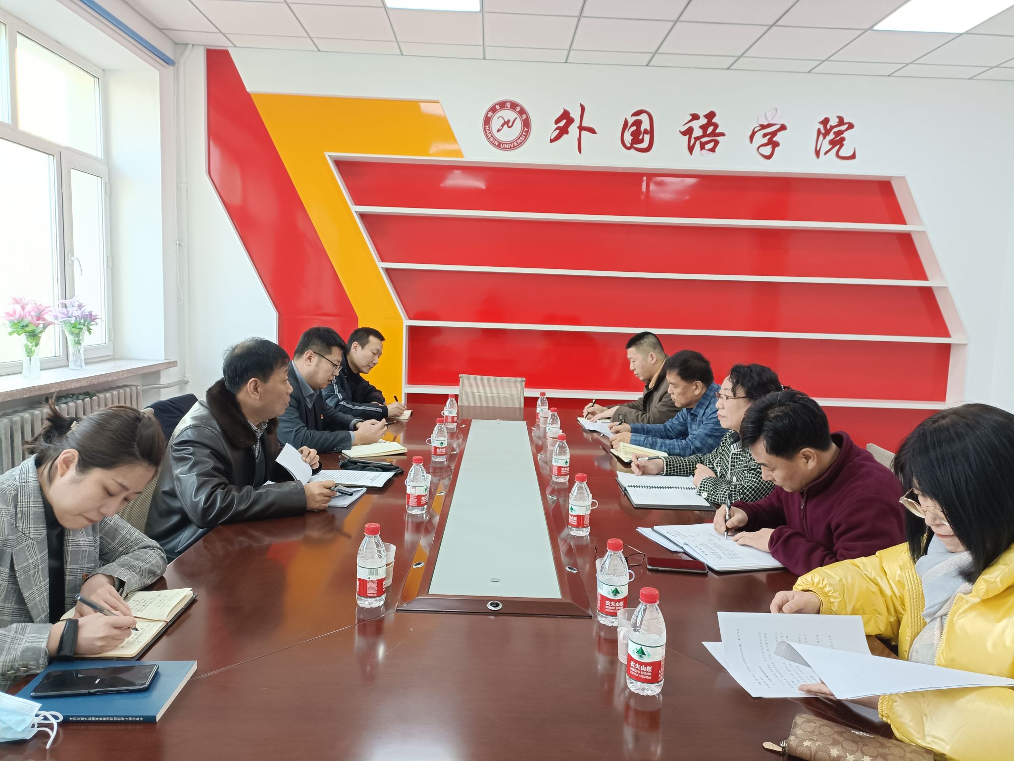 2023年2月17日下午,在1号楼5楼学院小会议室,外国语学院党总支召开2022年度领导班子民主生活会。党委委员、副校长于少鹏,组织部副部长孙英杰,宣传部办公室邢珺,校纪委办公室姜鹏飞到会指导,外国语学院党总支全体成员参加会议。会议由学院党总支书记冯丽杰主持。