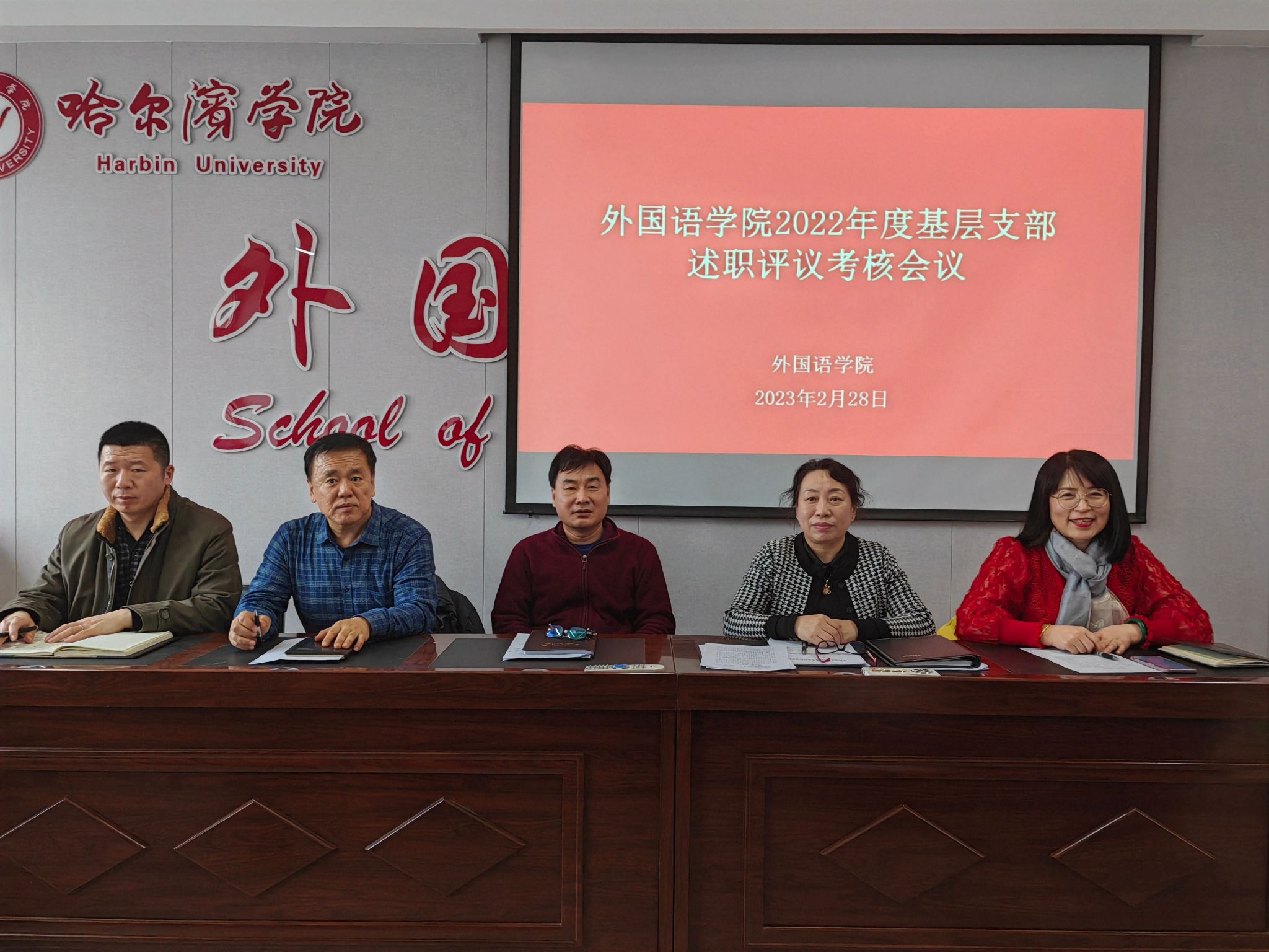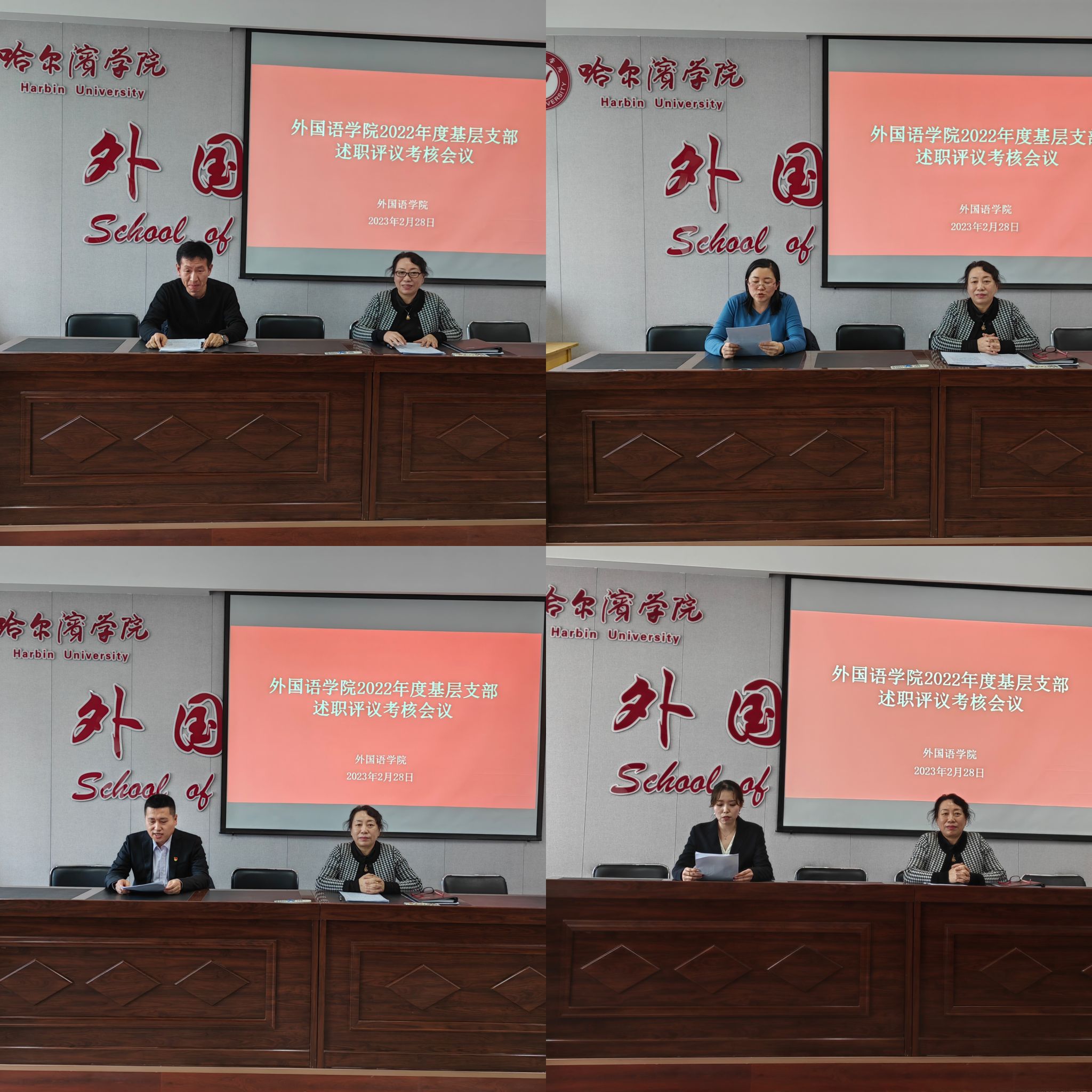 为深入学习宣传贯彻党的二十大精神,加强基层党组织建设,坚持和完善党支部书记抓党建工作述职评议考核工作,外国语学院于2023年2月28日组织开展了2022年度党支部书记党建述职评议考核大会,会议由外国语学院党总支书记冯丽杰主持,外国语学院全体教工党员参加会议。