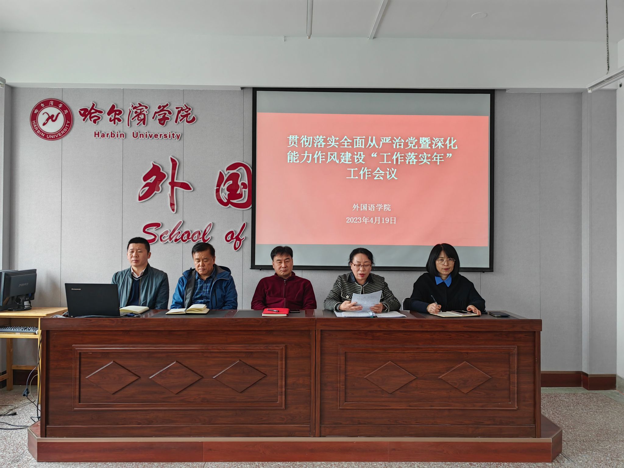 为推动习近平总书记重要讲话重要指示精神、党中央和省委的决策部署,以及省委教育工委、校党委的工作要求在学院落地见效,4月19日下午13:00点在院大会议室,我院召开贯彻落实全面从严治党暨深化能力作风建设“工作落实年”活动工作会议,会议由党总支书记冯丽杰主持,外国语学院全体教师参会。